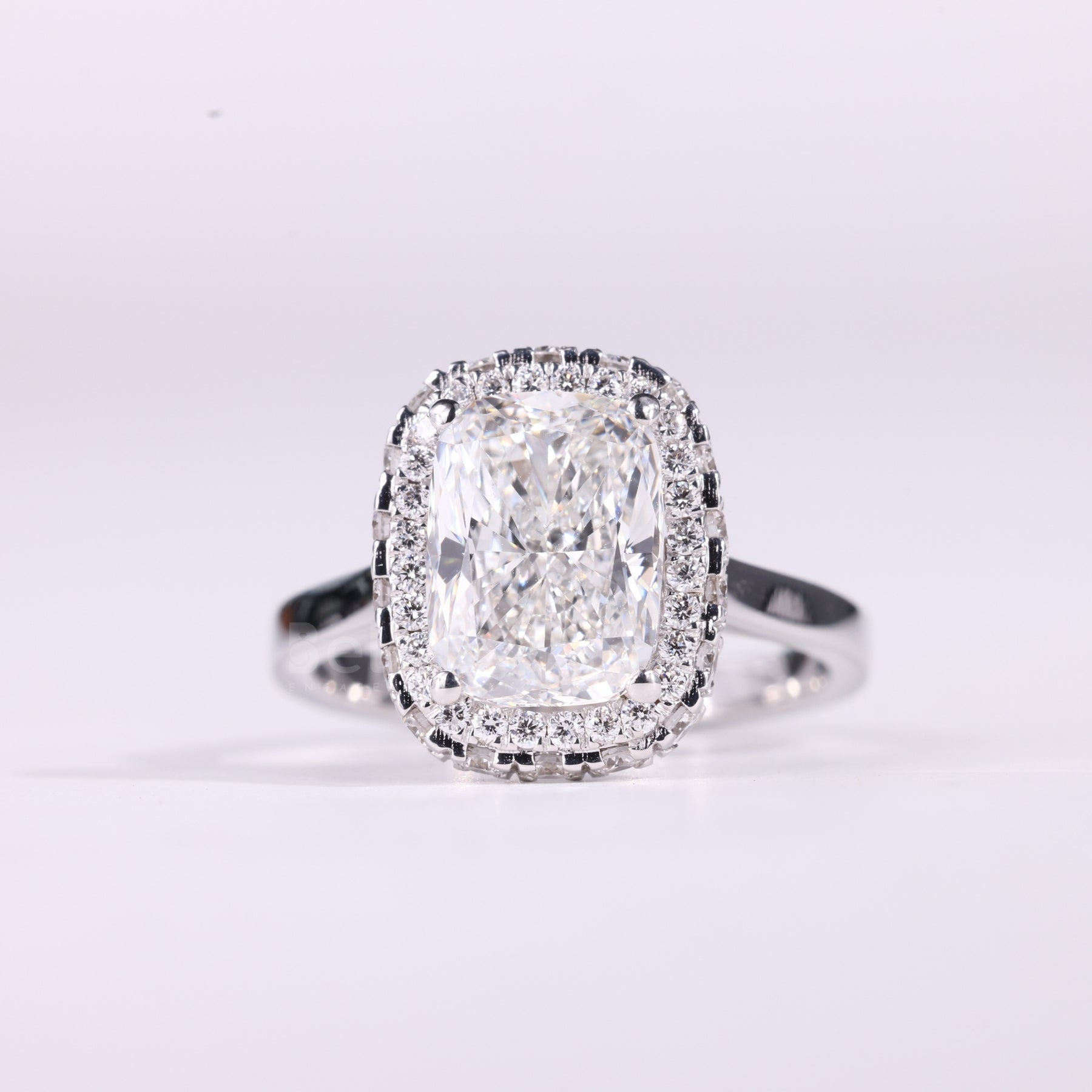 1.50CT Elongated Cushion Cut Halo Setting Moissanite Engagement Ring