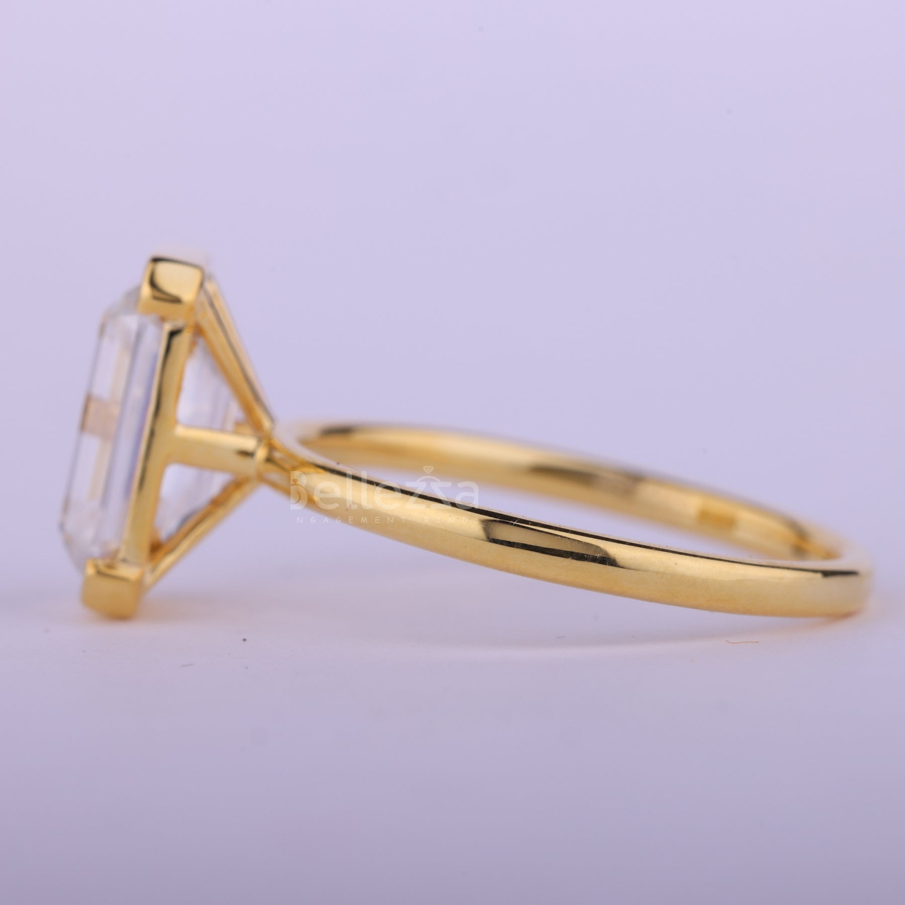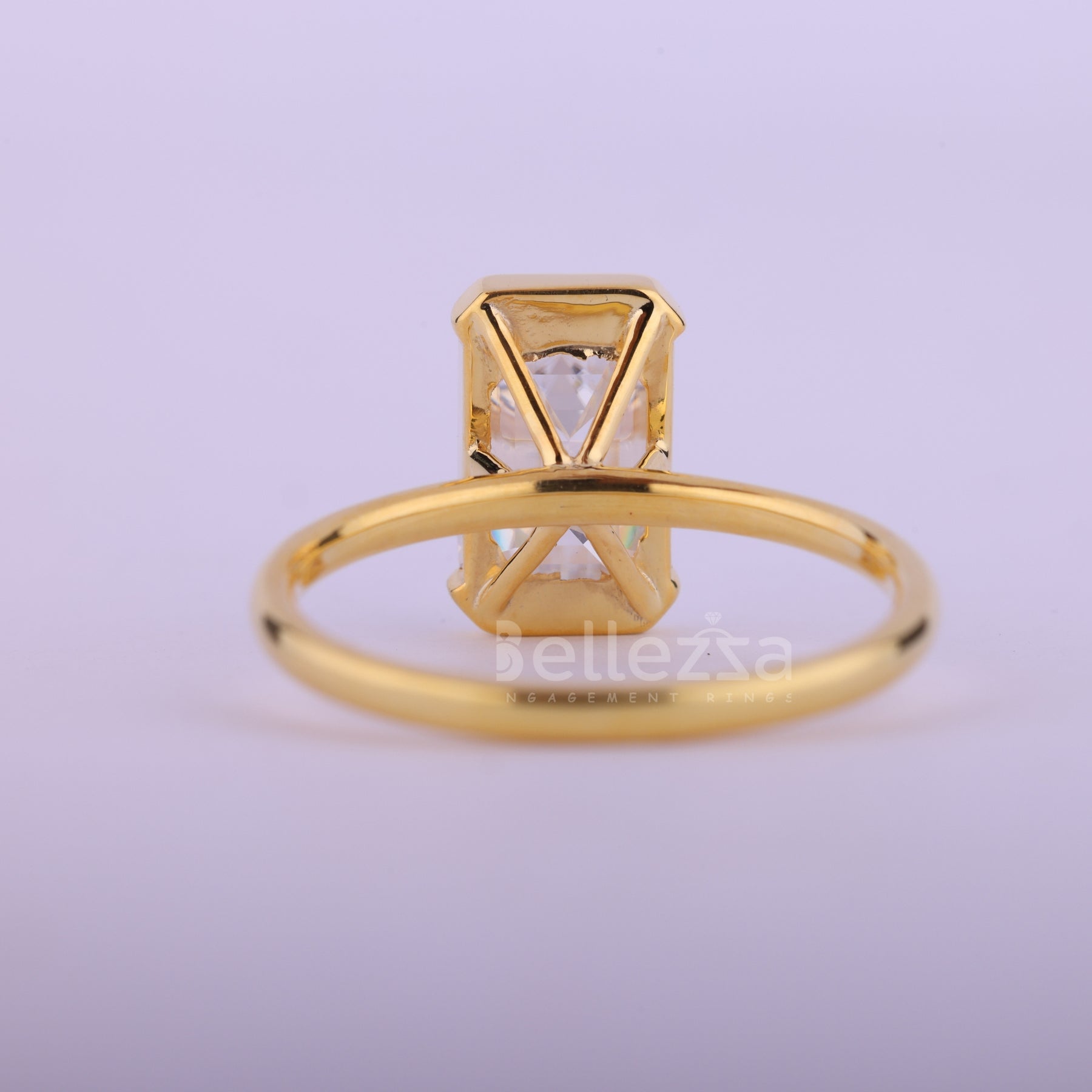 1.50CT Emerald Cut Half Bezel Set Solitaire Engagement Ring