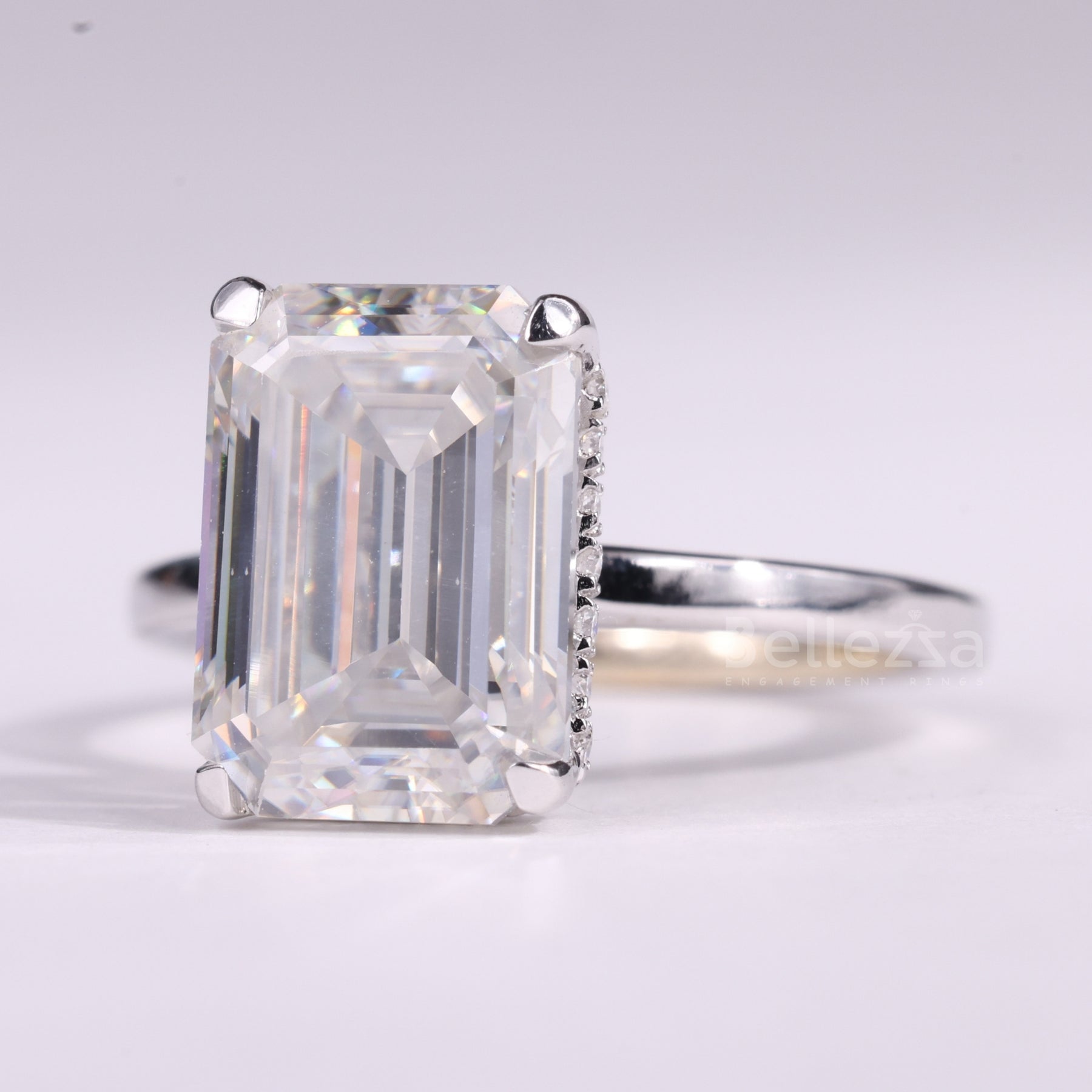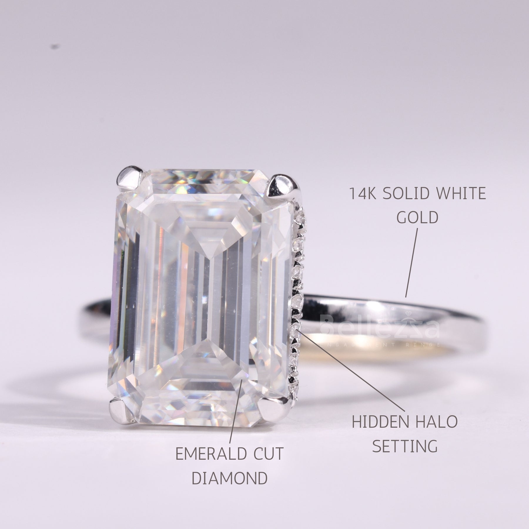 1.50CT Emerald Cut Hidden Halo Moissanite Engagement Ring