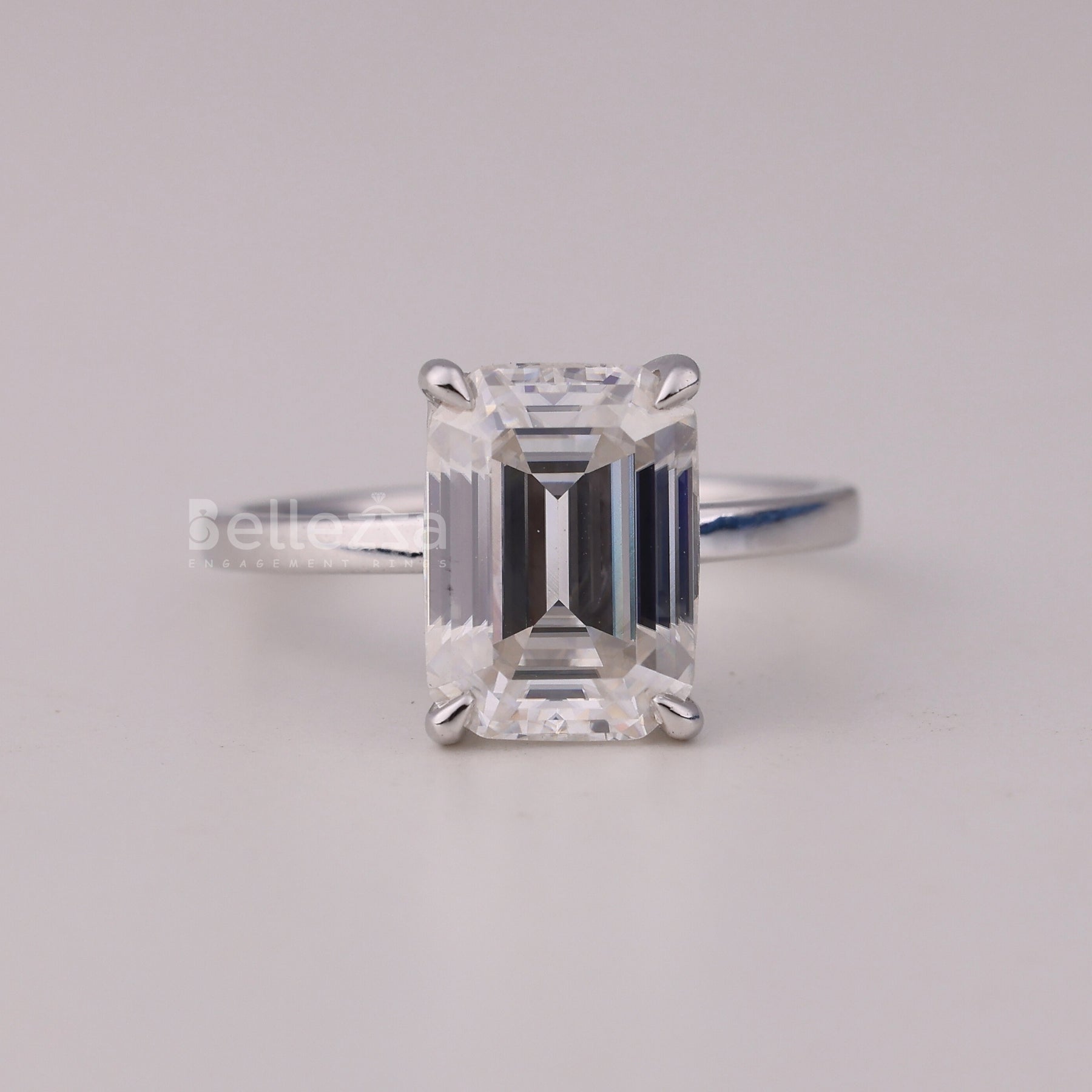 1.50CT Emerald Cut Hidden Halo Moissanite Engagement Ring