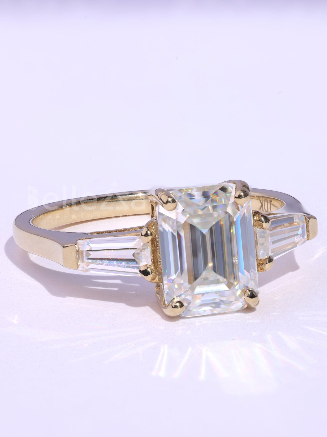 1.50CT Emerald Cut Three Stone Moissanite Diamond Engagement Ring