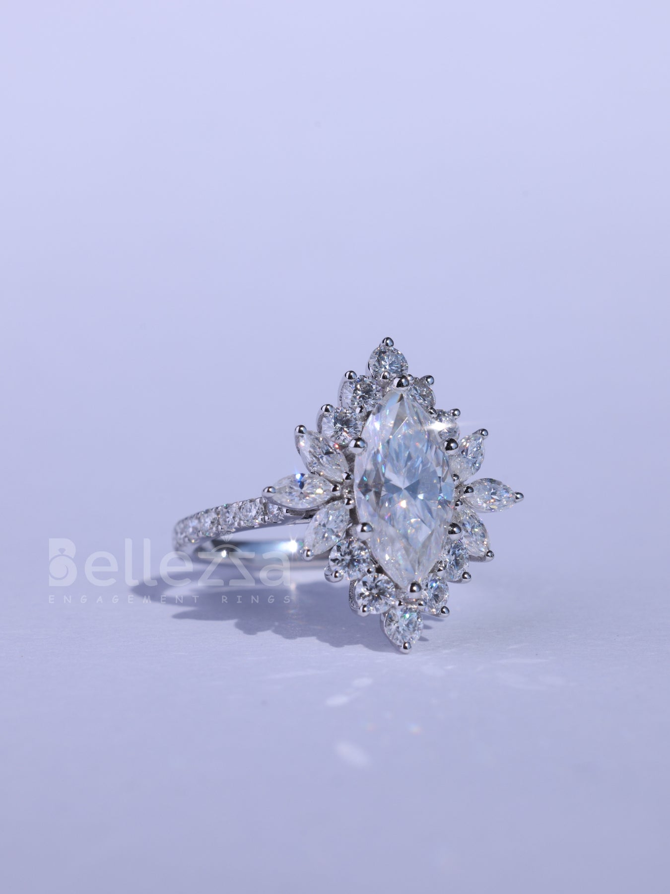 1.50CT Marquise Cut Cluster Diamond Moissanite Engagement Ring