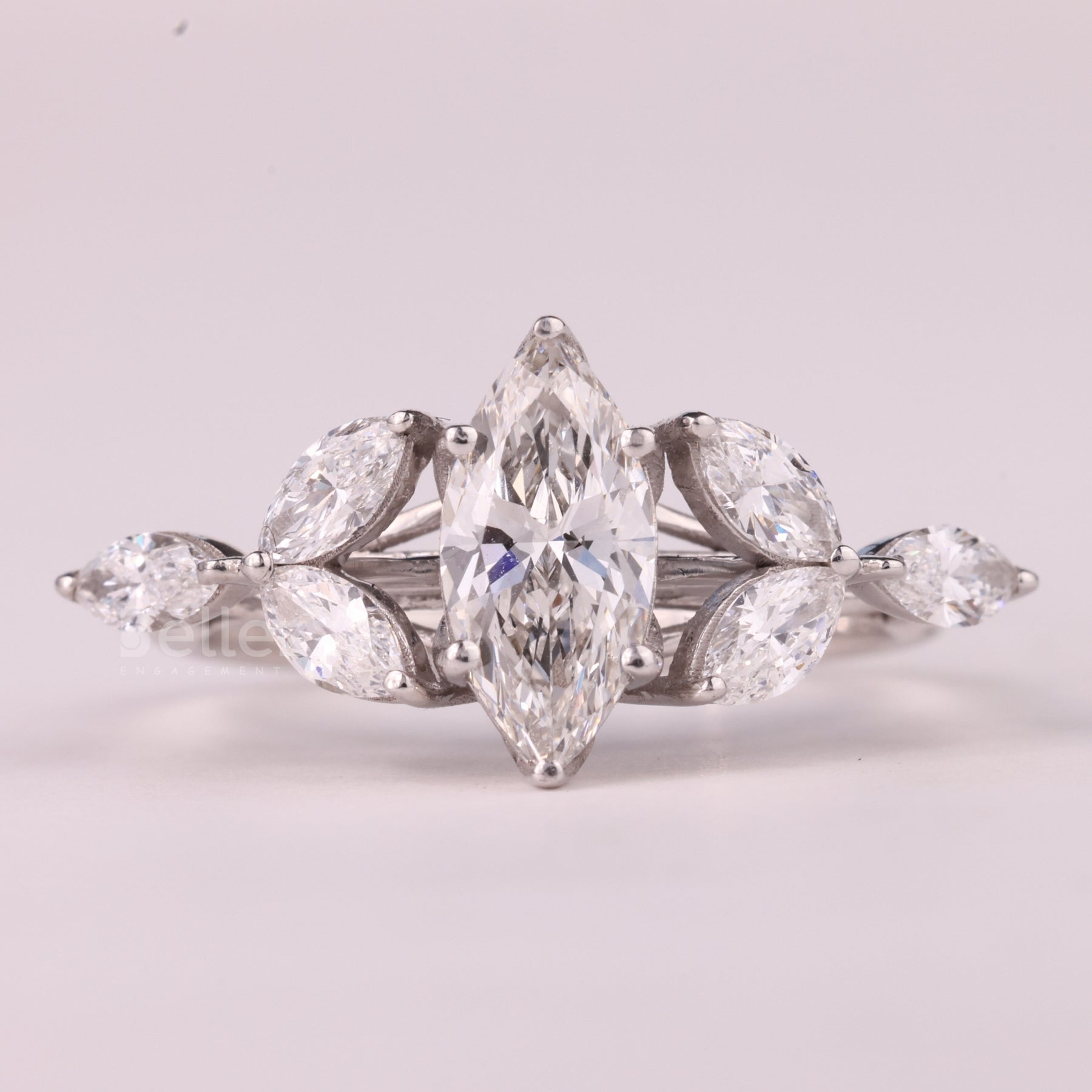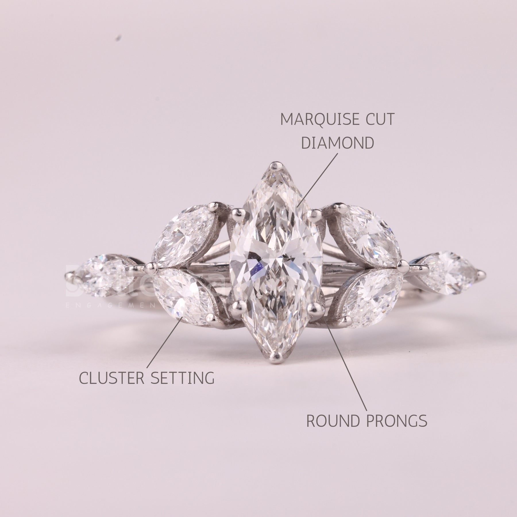 1.50CT Marquise Cut Cluster Diamond Moissanite Engagement Ring