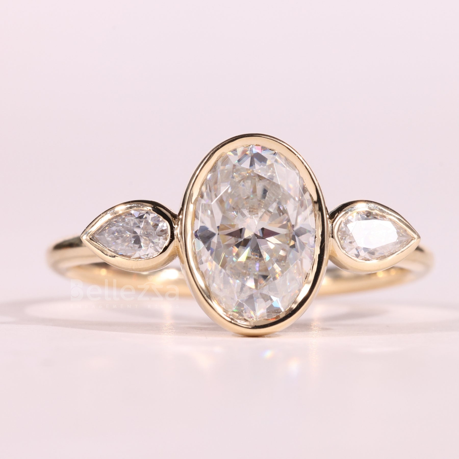 1.50CT Oval Cut Bezel Setting Moissanite Three Stone Engagement Ring