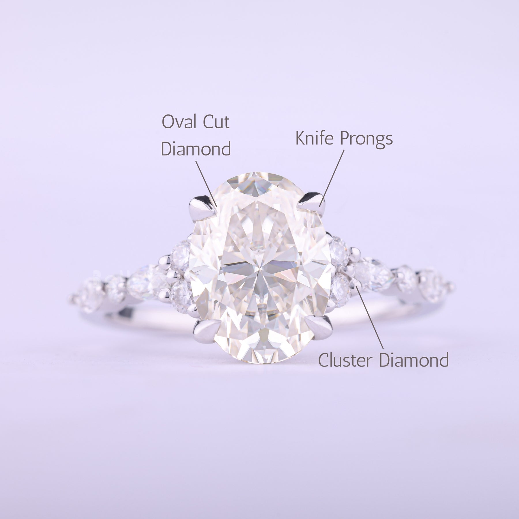 1.50CT Oval Cut Cluster Diamond Moissanite Engagement Ring