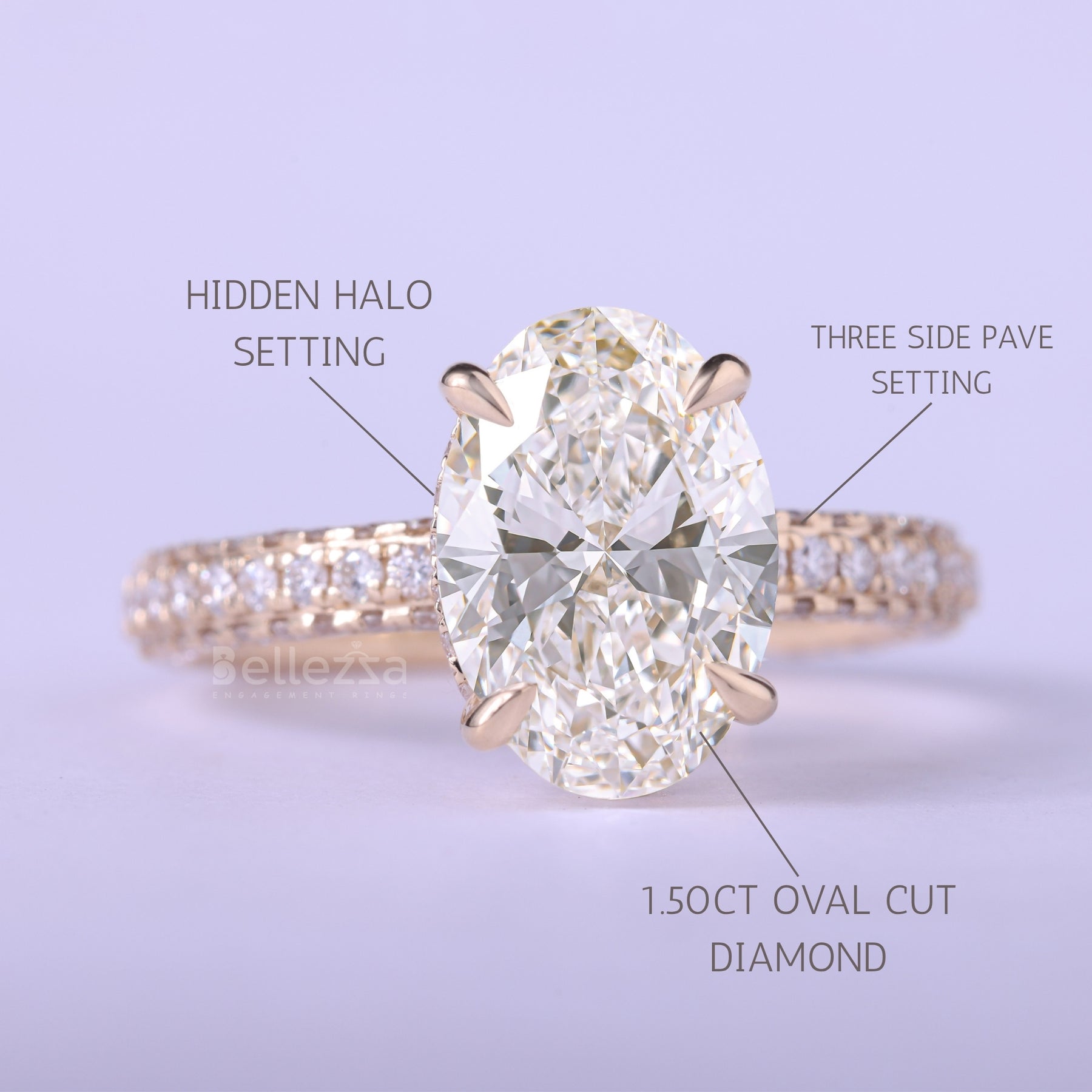 1.50CT Oval Cut Three Side Pave Setting Moissanite Engagement Ring