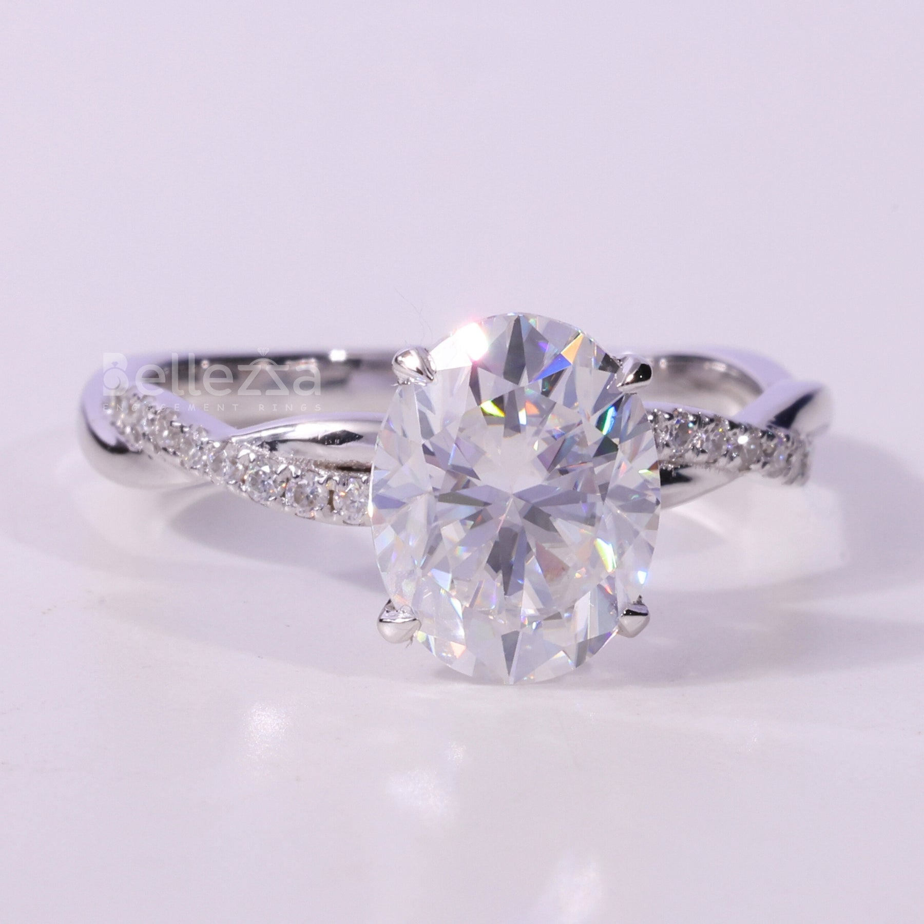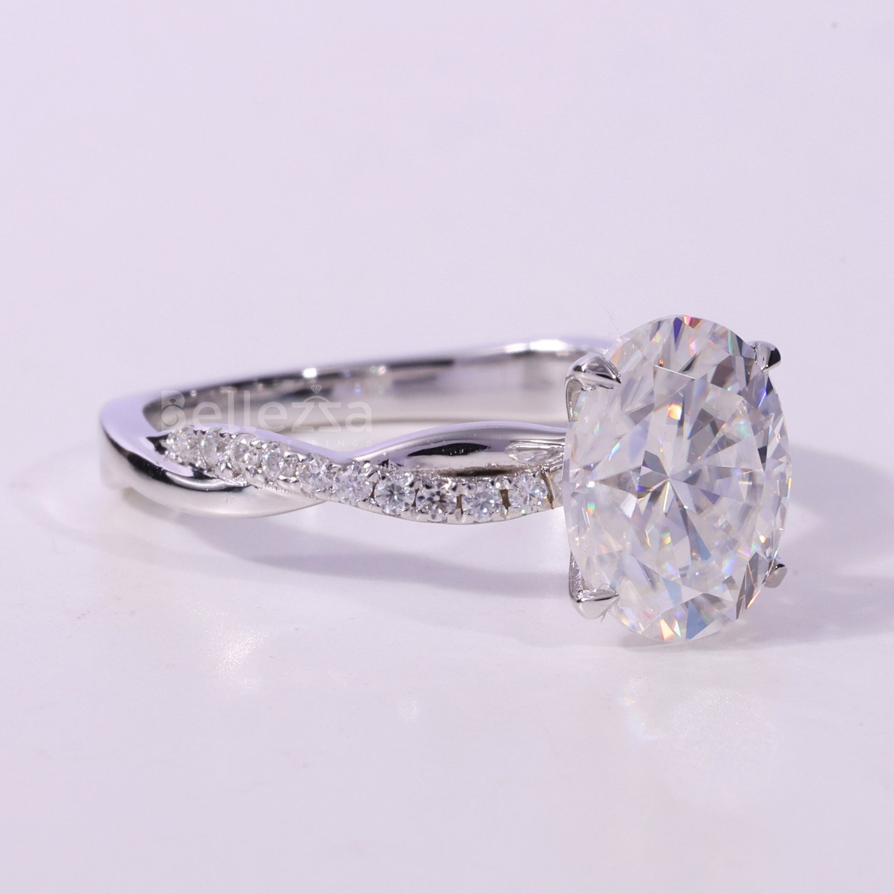 1.50CT Oval Cut Twisted Pave Setting Moissanite Engagement Ring