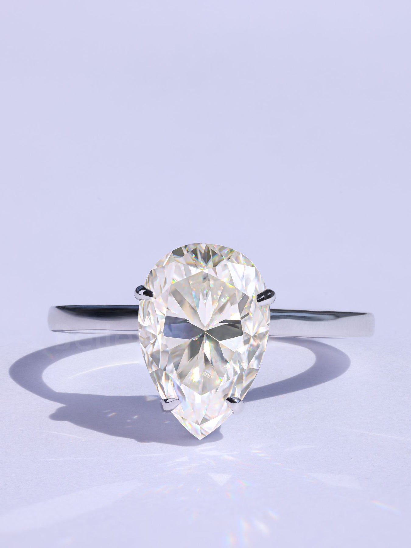 1.50CT Pear Cut Solitaire Moissanite Diamond Engagement Ring