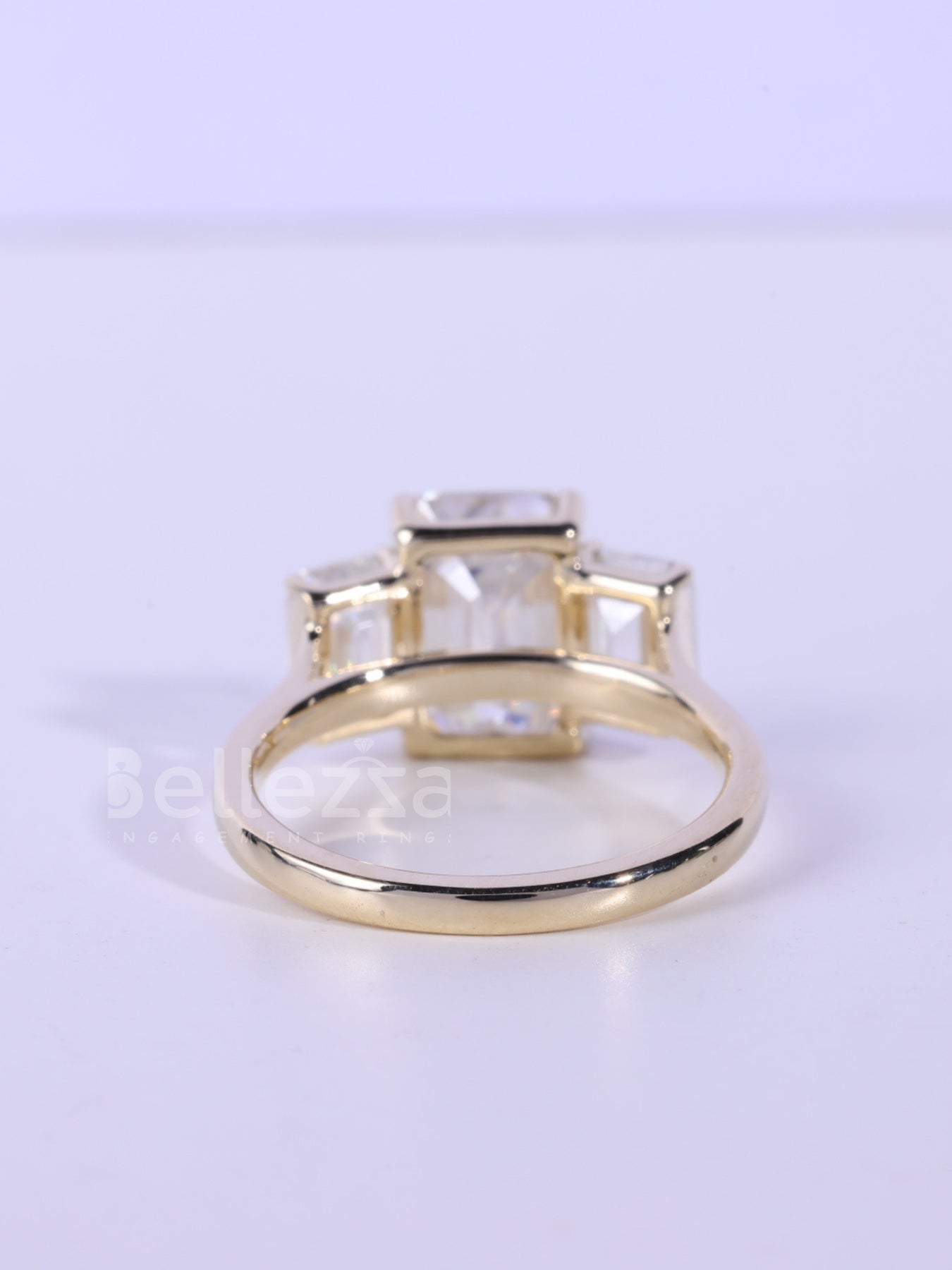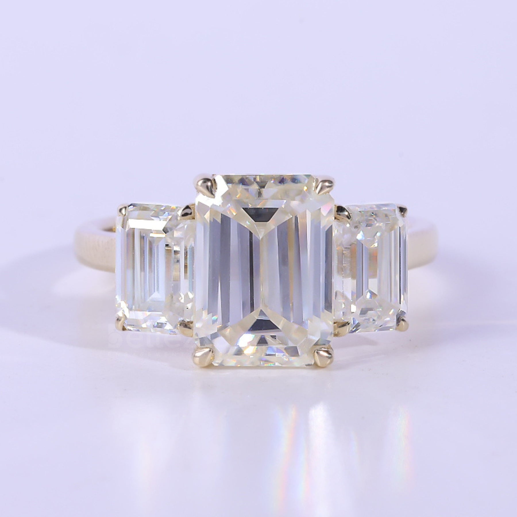 2.0CT-3.0CT Emerald Cut Three Stone Moissanite Engagement Ring