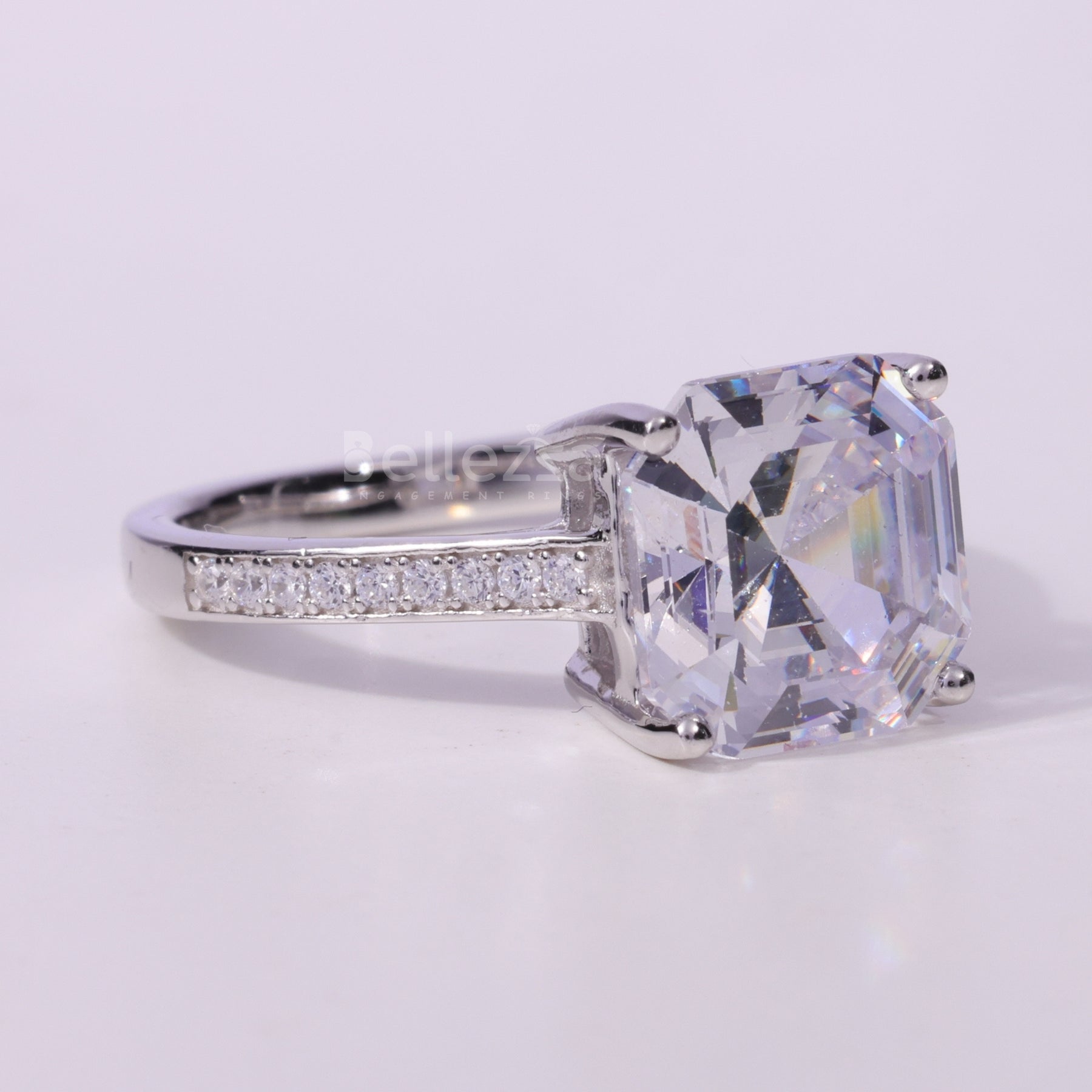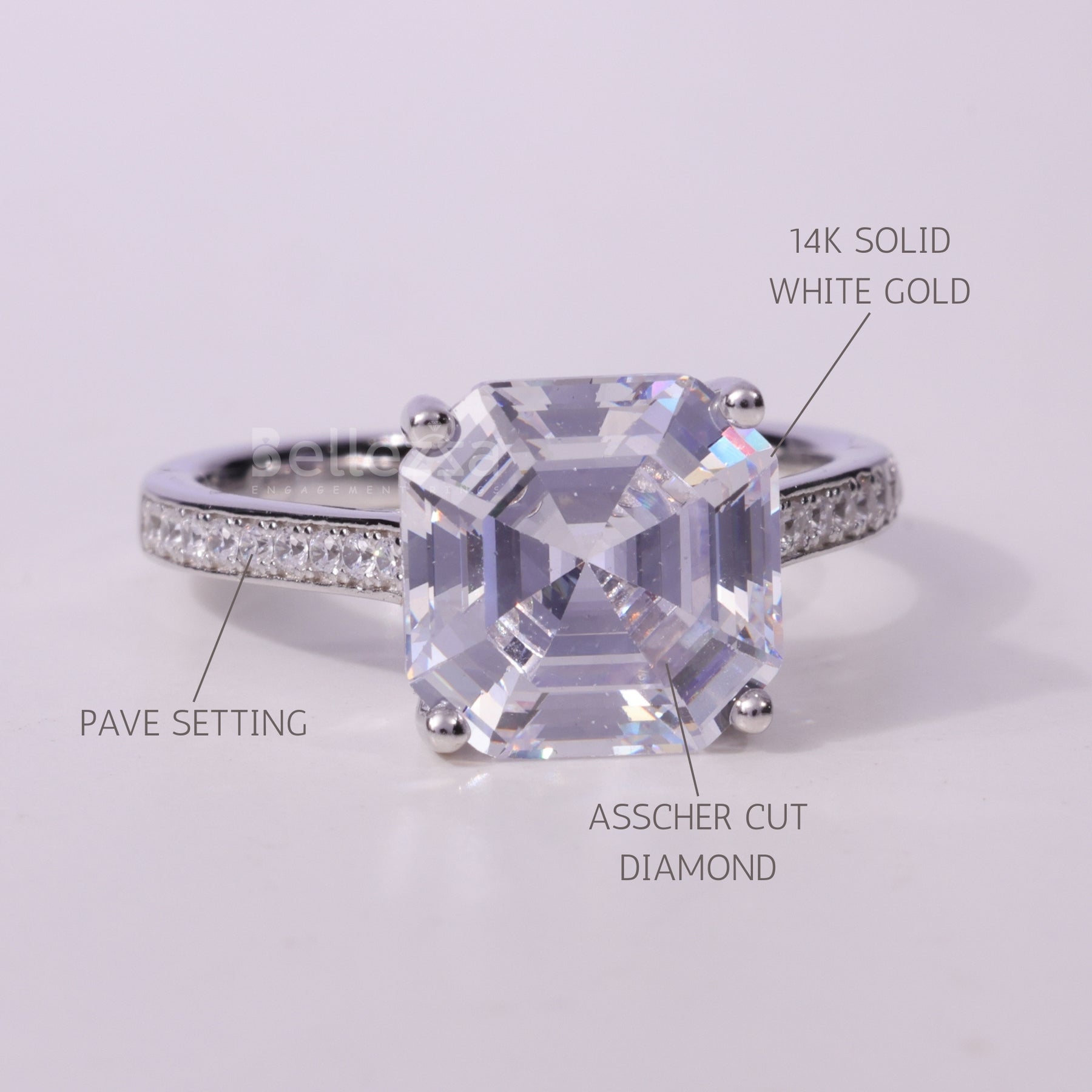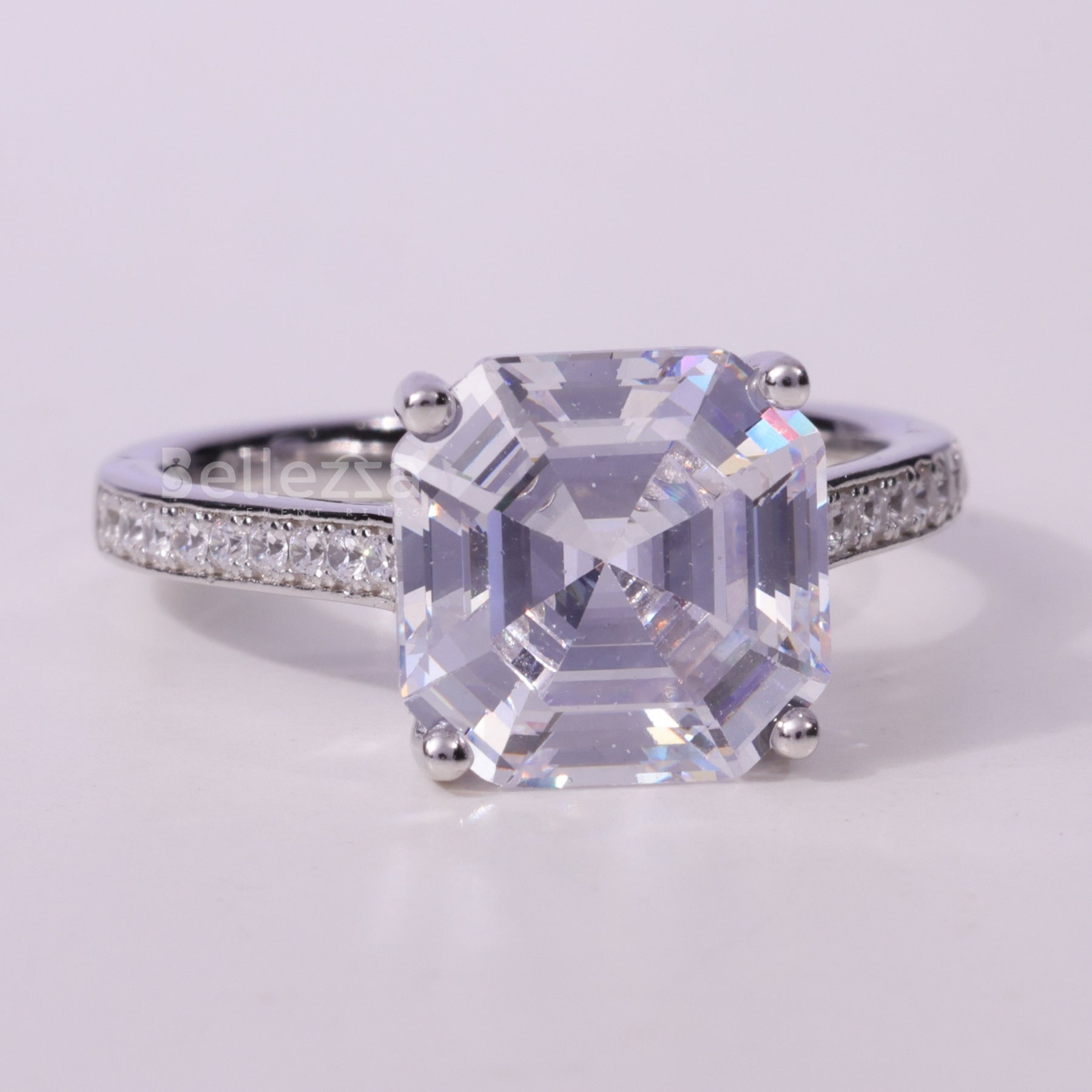 2.0CT Asscher Cut Pave Setting Moissanite Engagement Ring