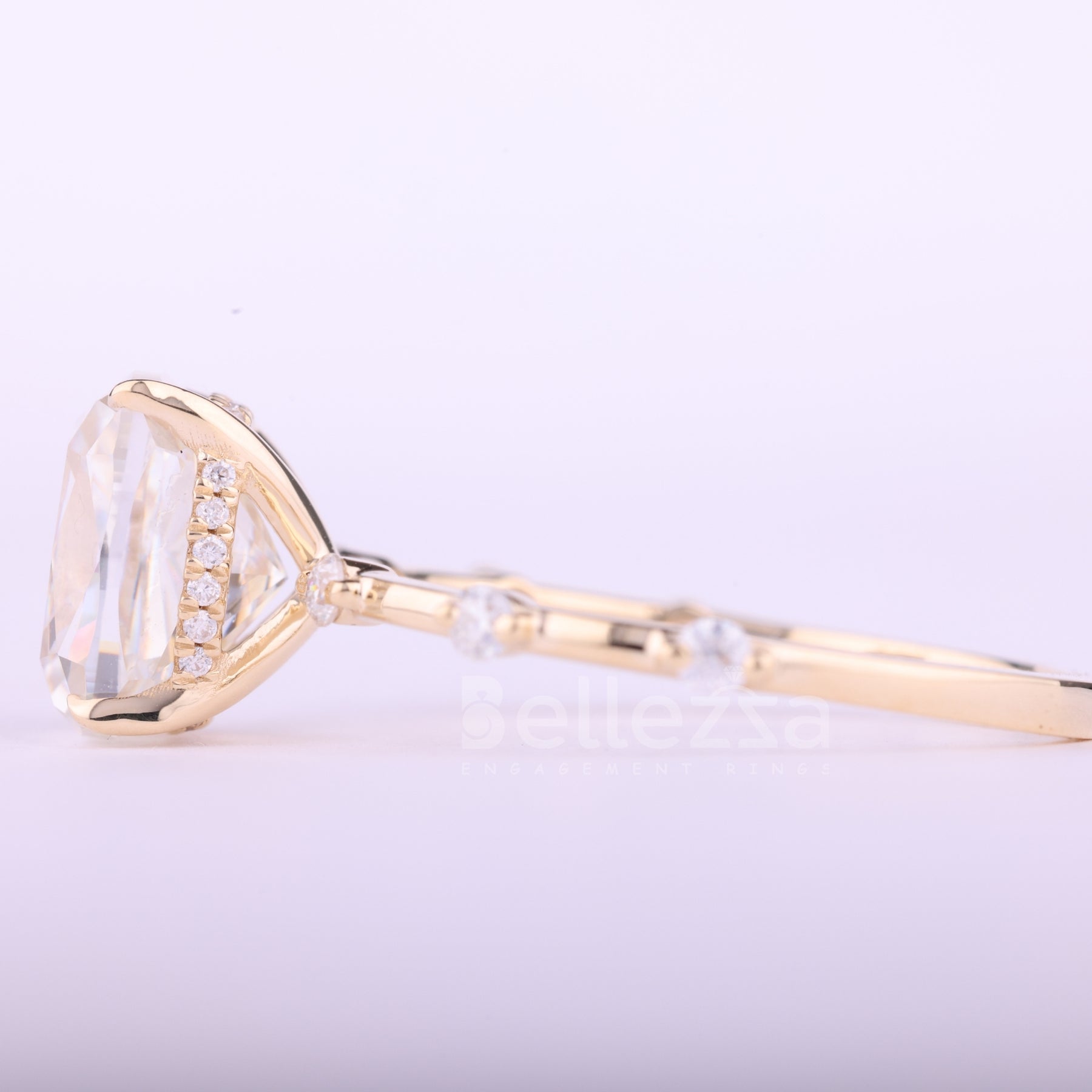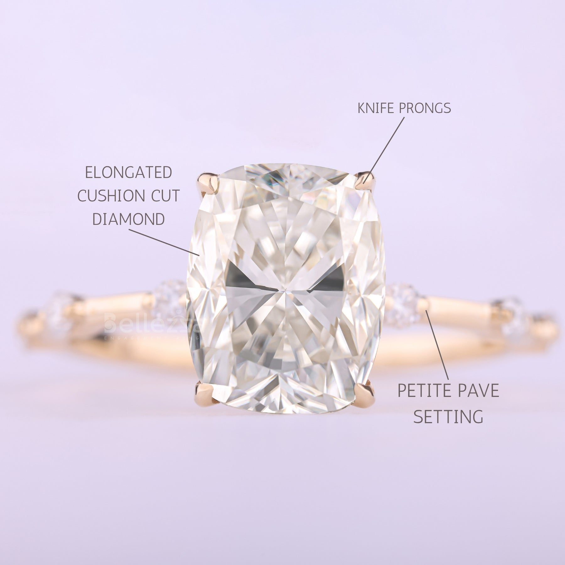 2.0CT Elongated Cushion Cut Petite Pave Setting Moissanite Engagement Ring