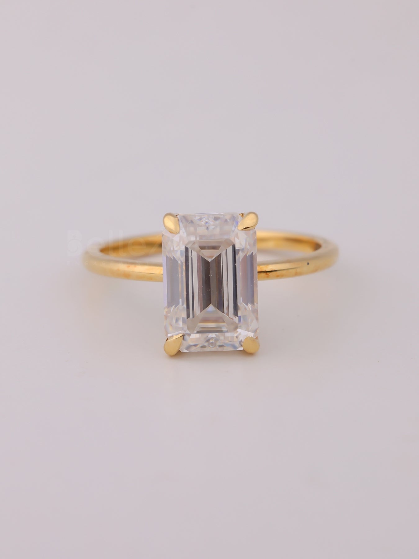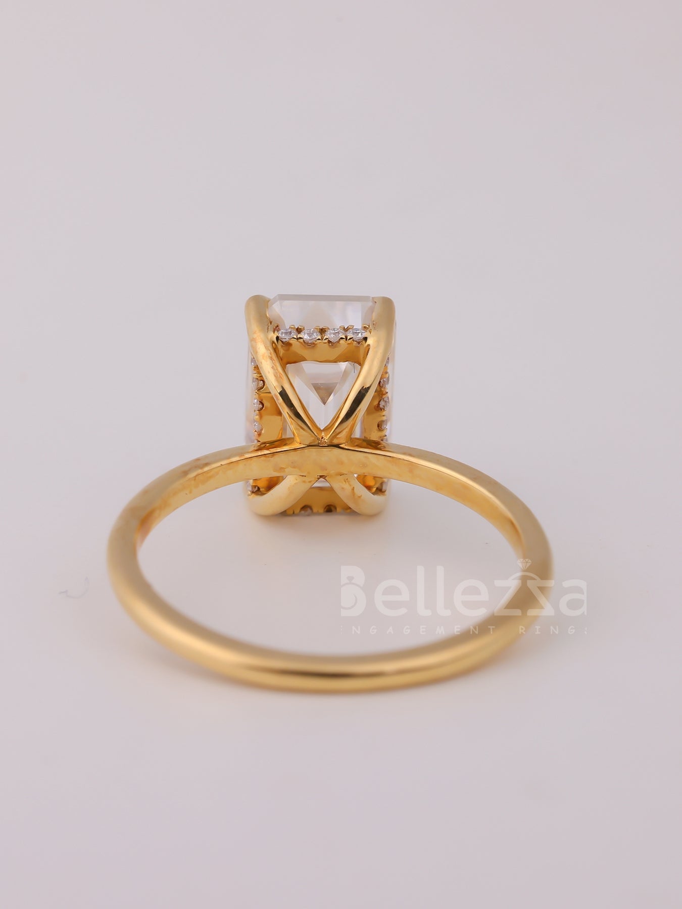 2.0CT Emerald Cut Diamond Hidden Halo Moissanite Engagement Ring