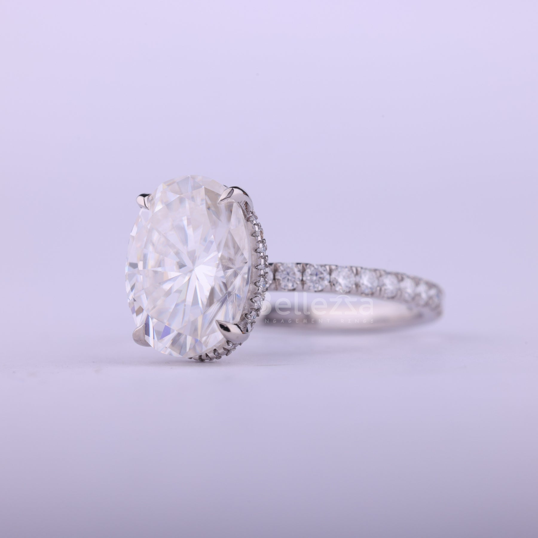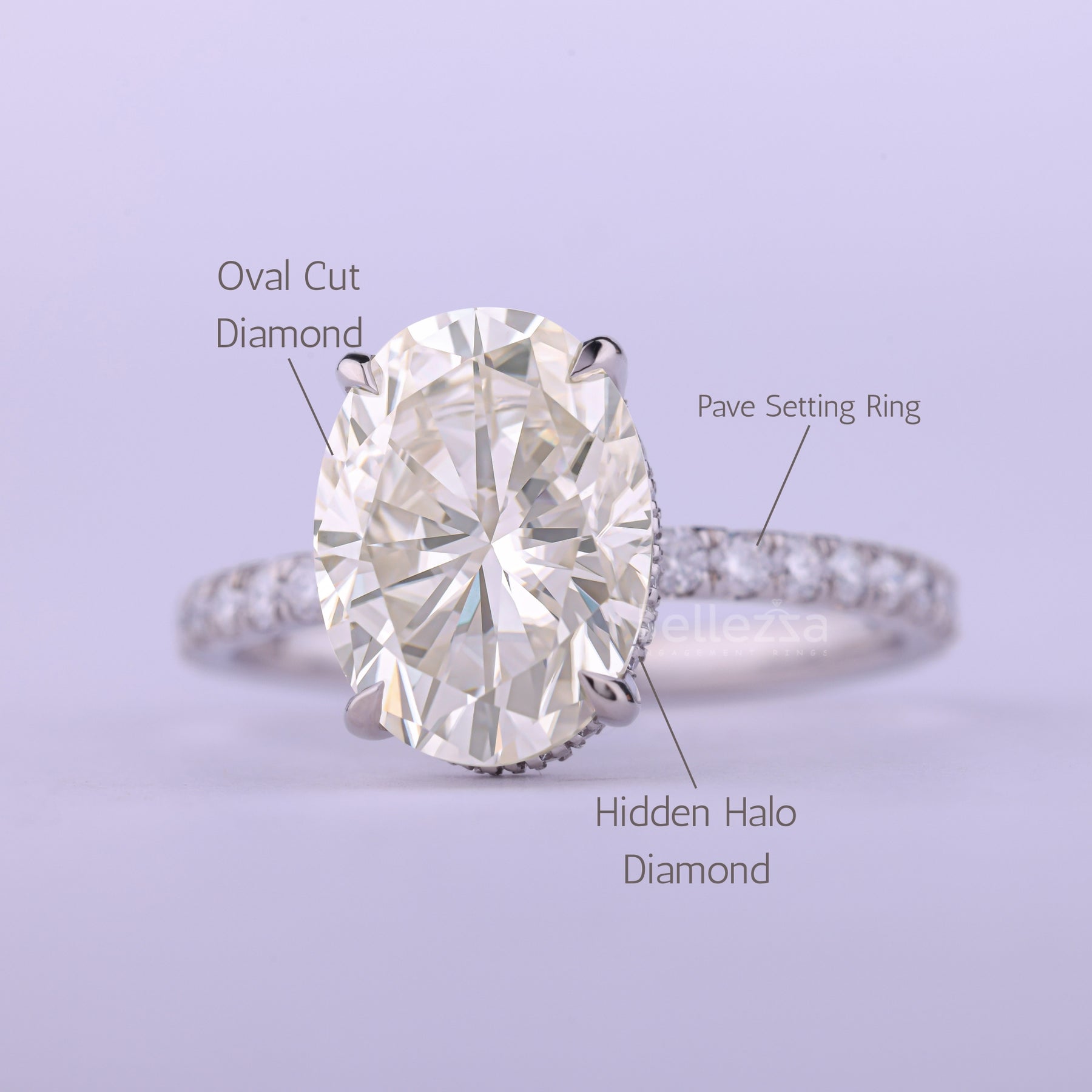 2.0CT Oval Cut Hidden Halo Moissanite Engagement Ring