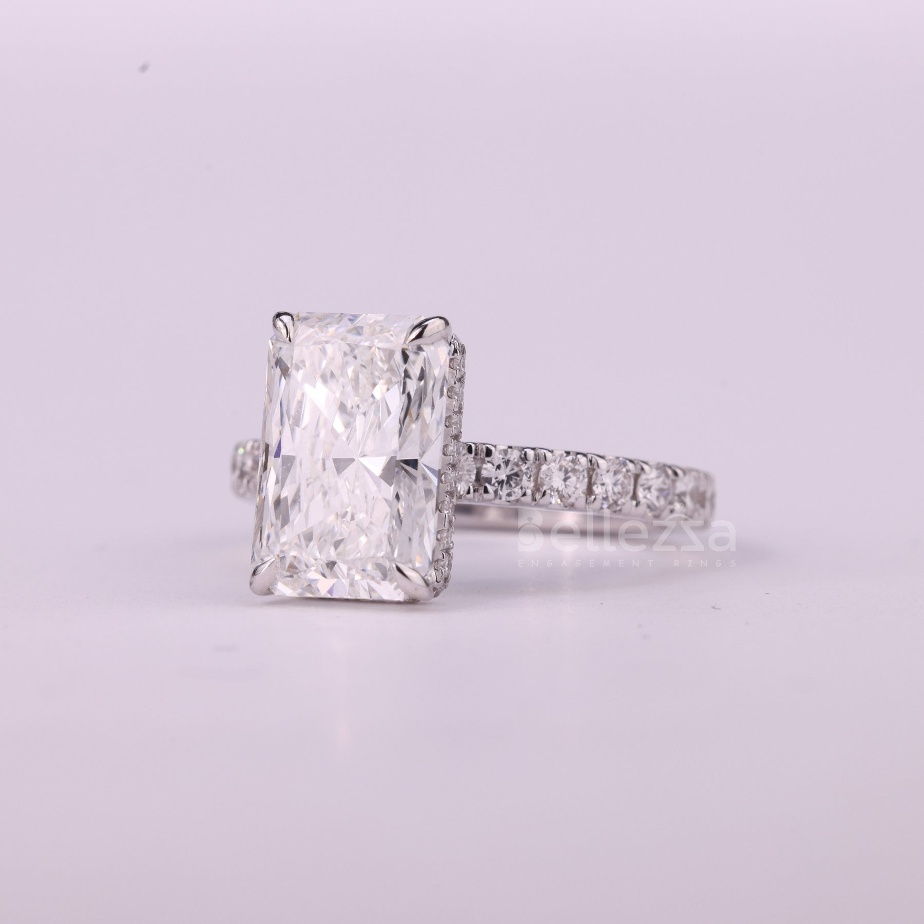2.0CT Radiant Cut Hidden Halo Pave Setting Moissanite Engagement Ring