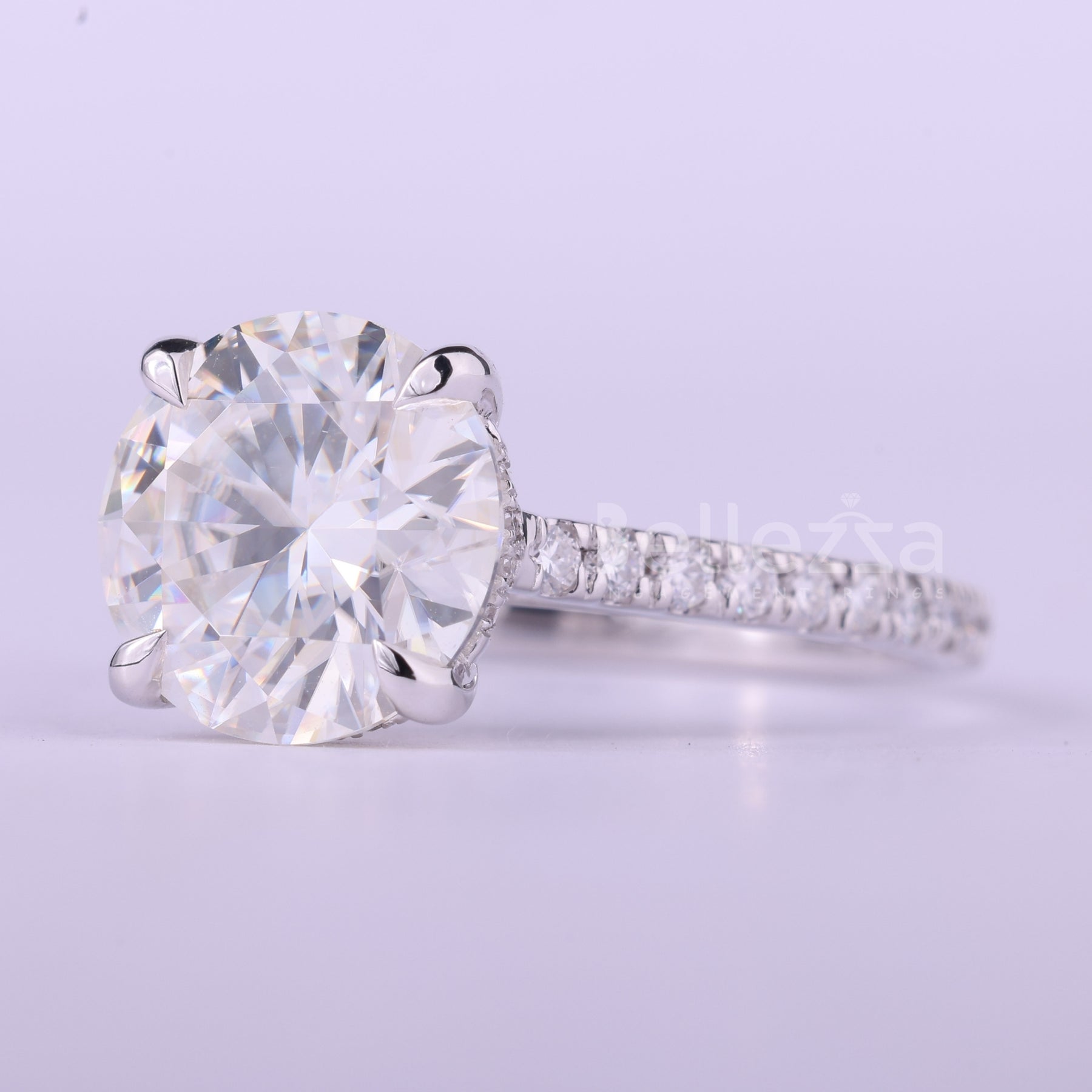 2.0CT Round Cut Diamond Pave Setting Moissanite Engagement Ring