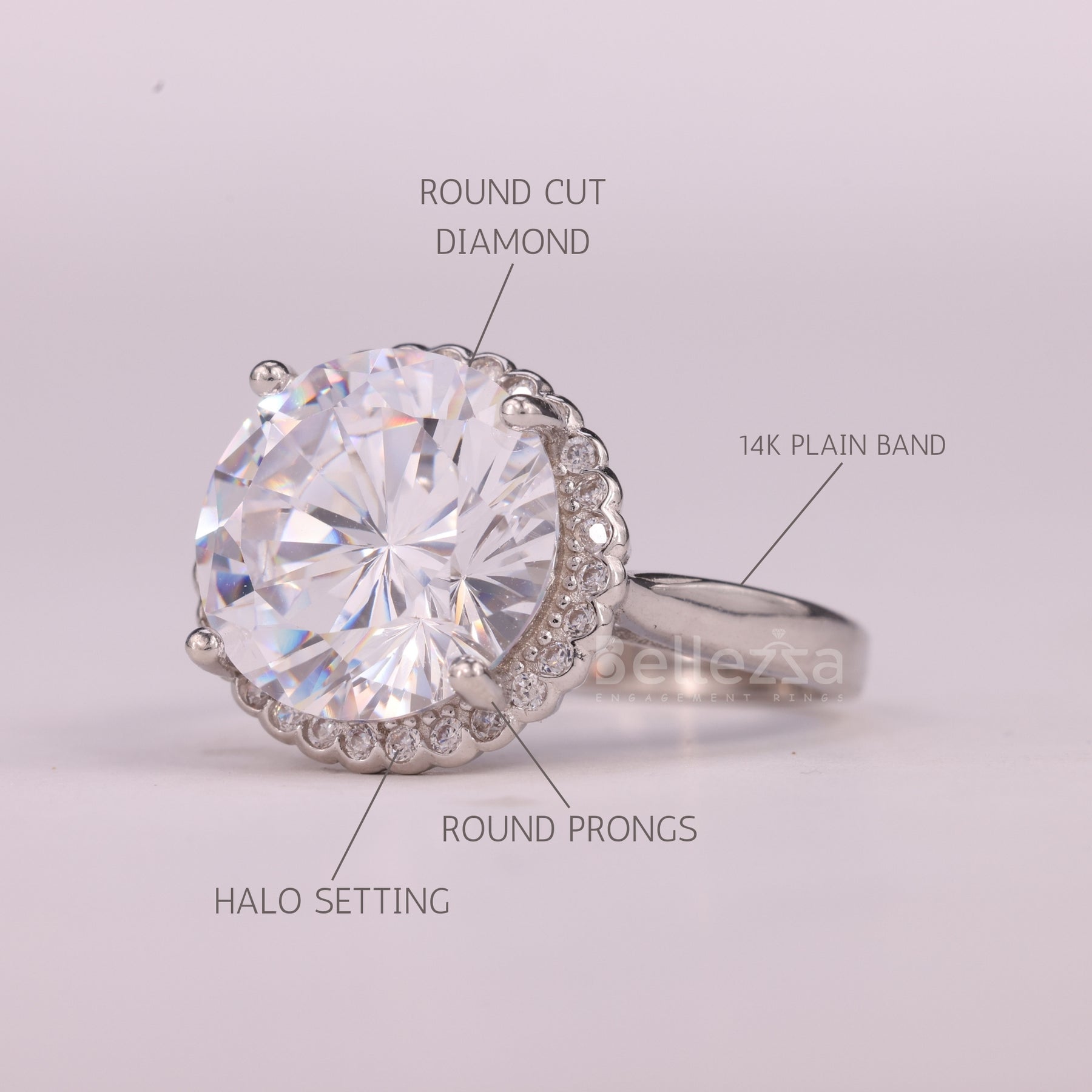 2.0CT Round Cut Halo Setting Moissanite Engagement Ring