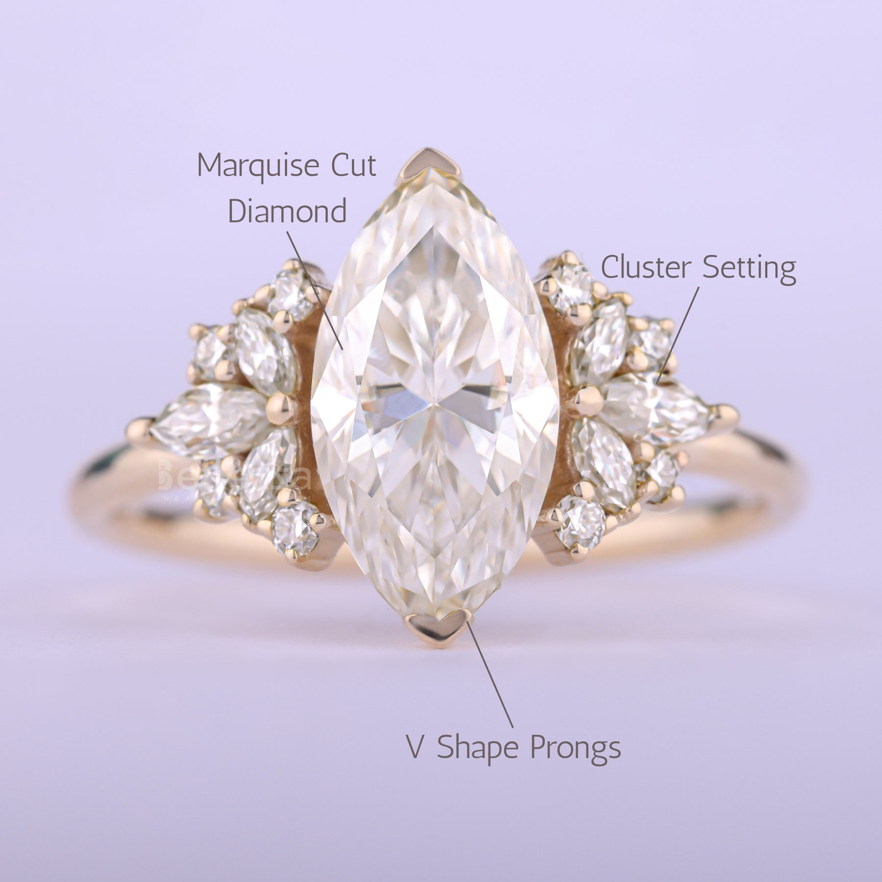 2.50CT Marquise Cut Cluster Diamond Moissanite Engagement Ring