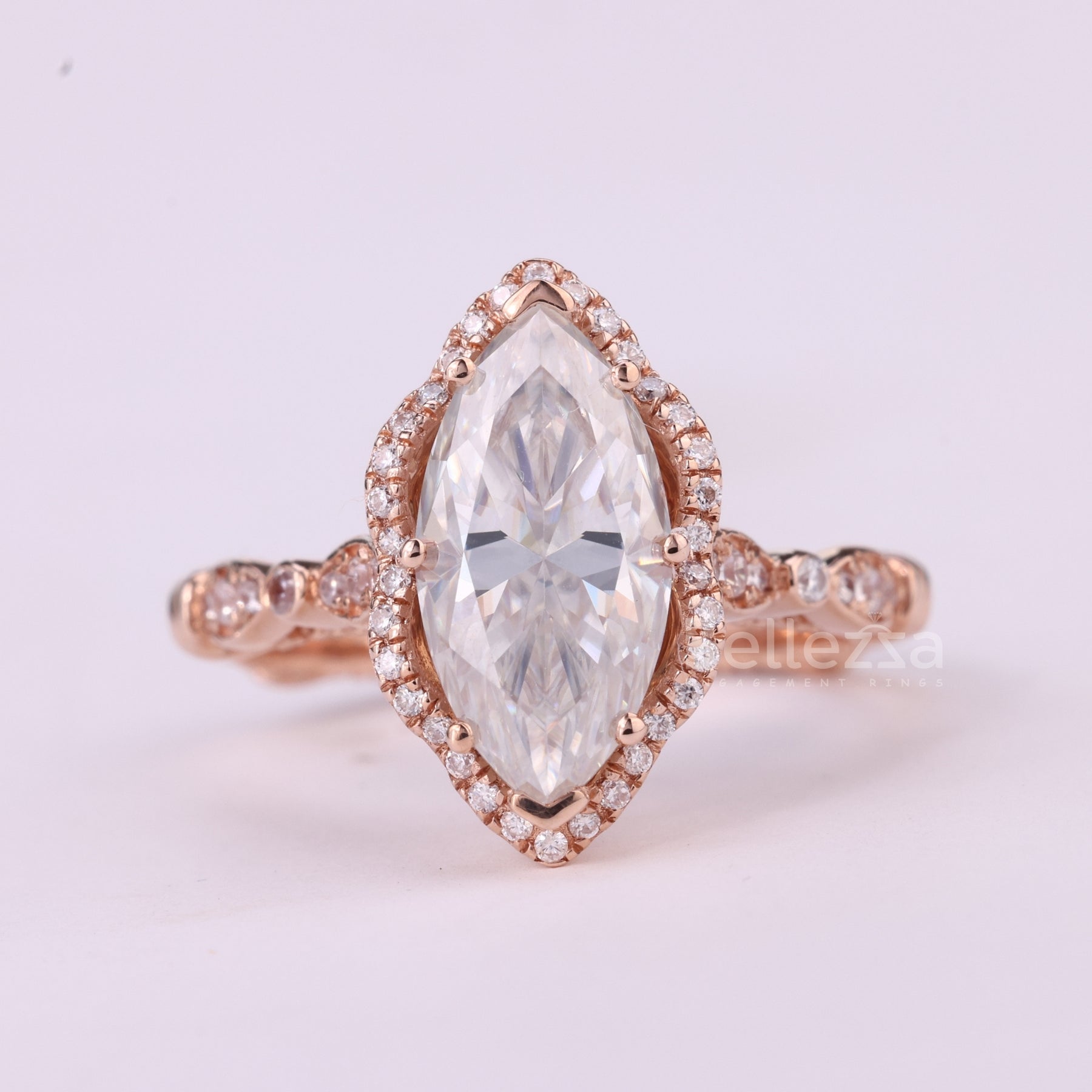 2.50CT Marquise Cut Vintage Inspired Halo Moissanite Engagement Ring
