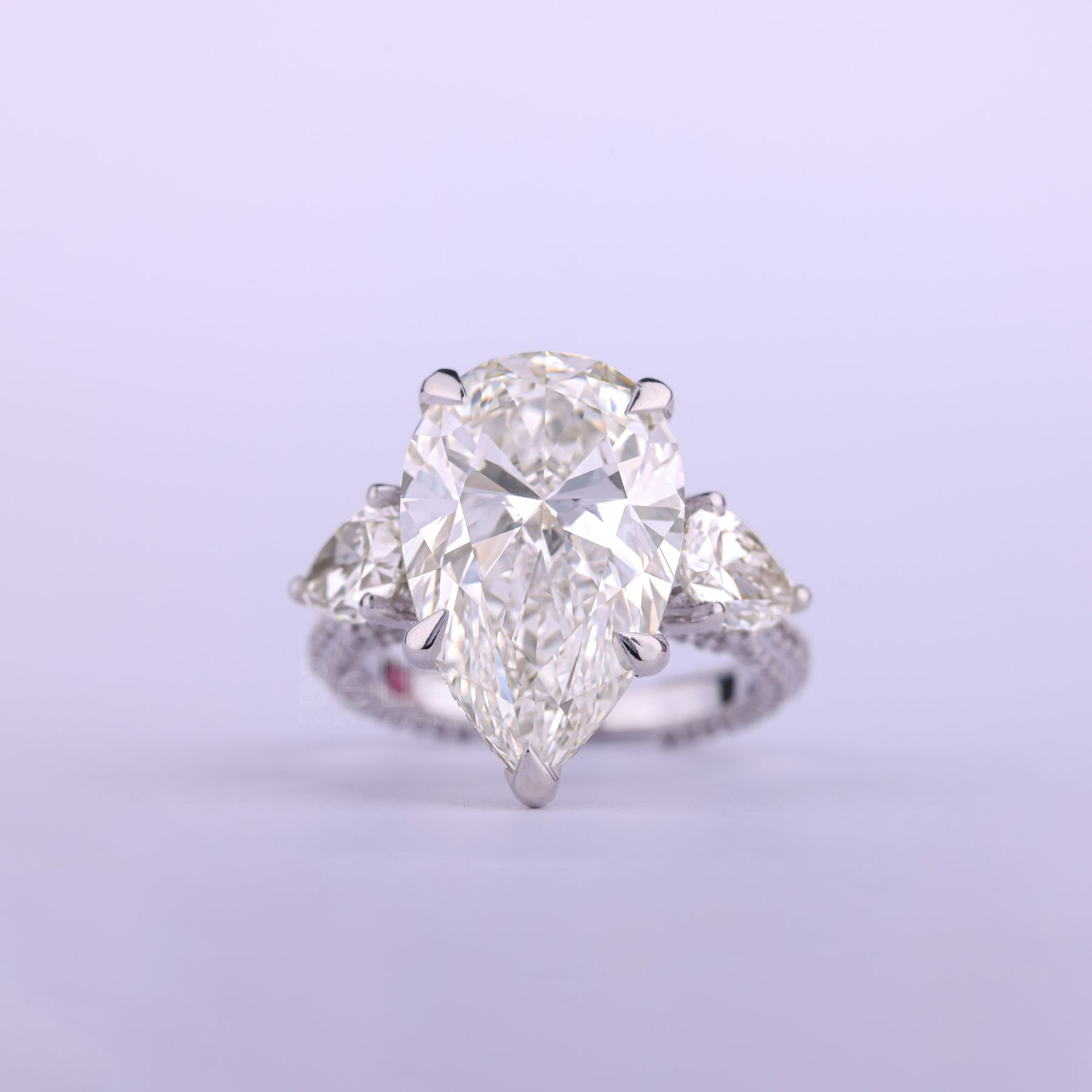 3.50CT Pear Cut Diamond Three Stone Cluster Engagement Ring