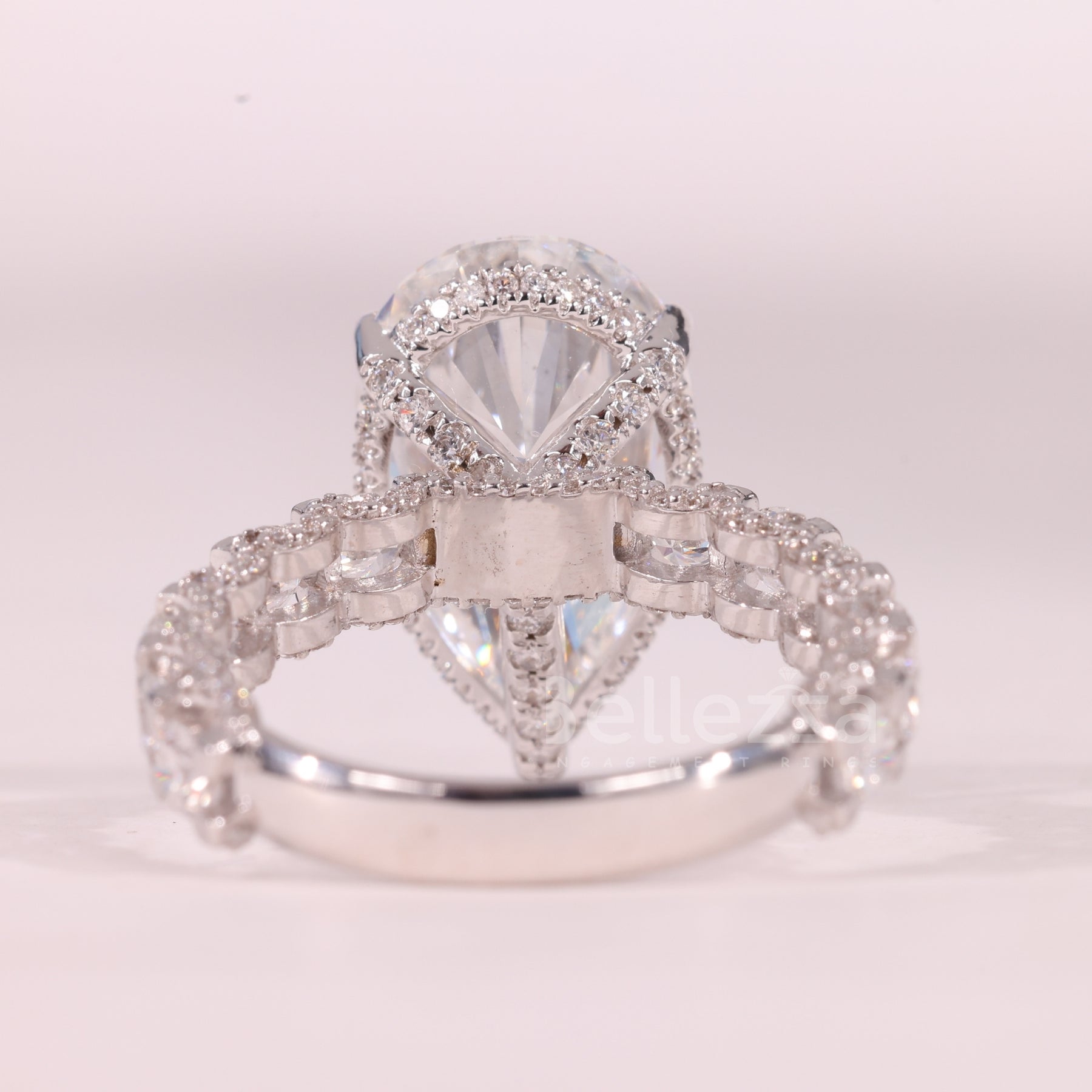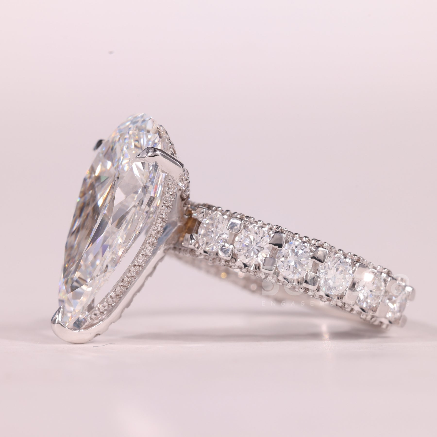 4.50CT Pear Cut Diamond Pave Setting Hidden Halo Engagement Ring