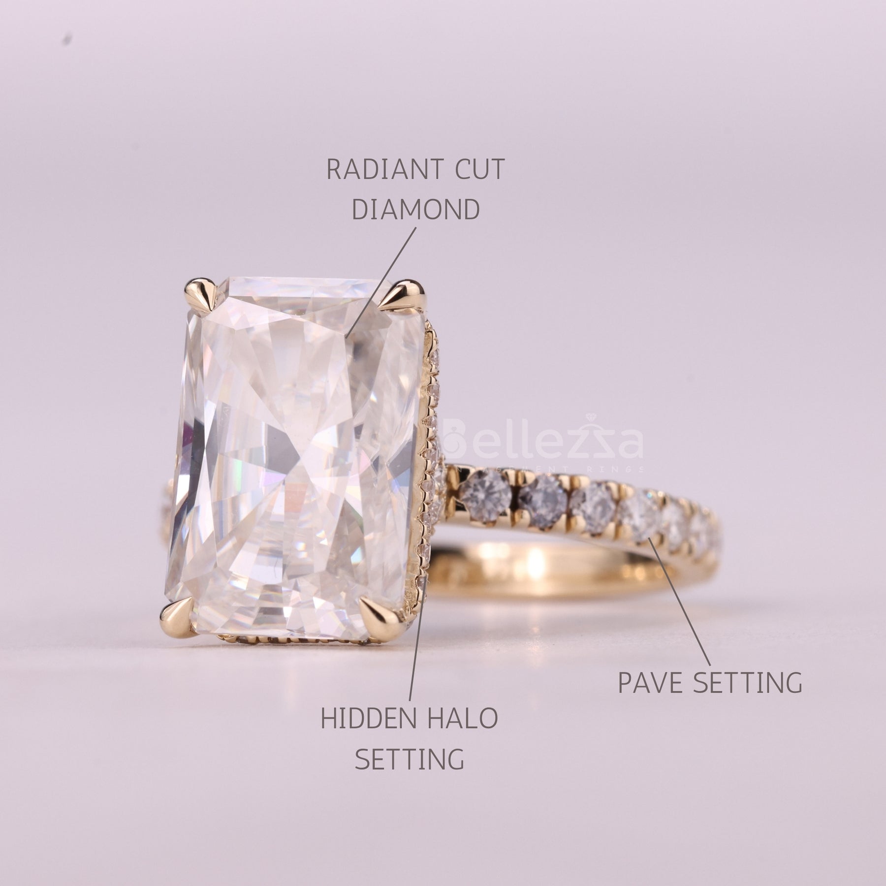 5.0CT Radiant Cut Hidden Halo Pave Setting Moissanite Engagement Ring