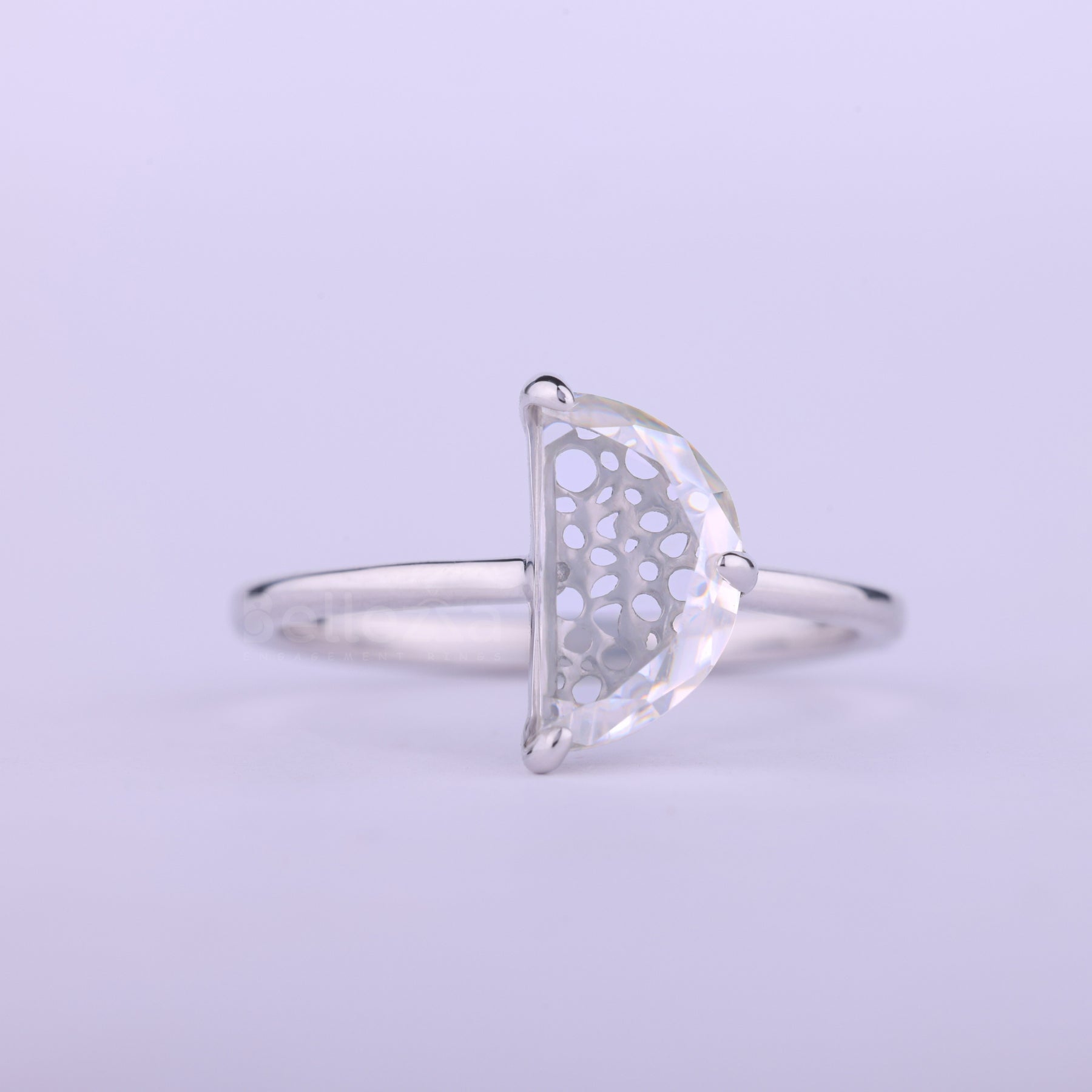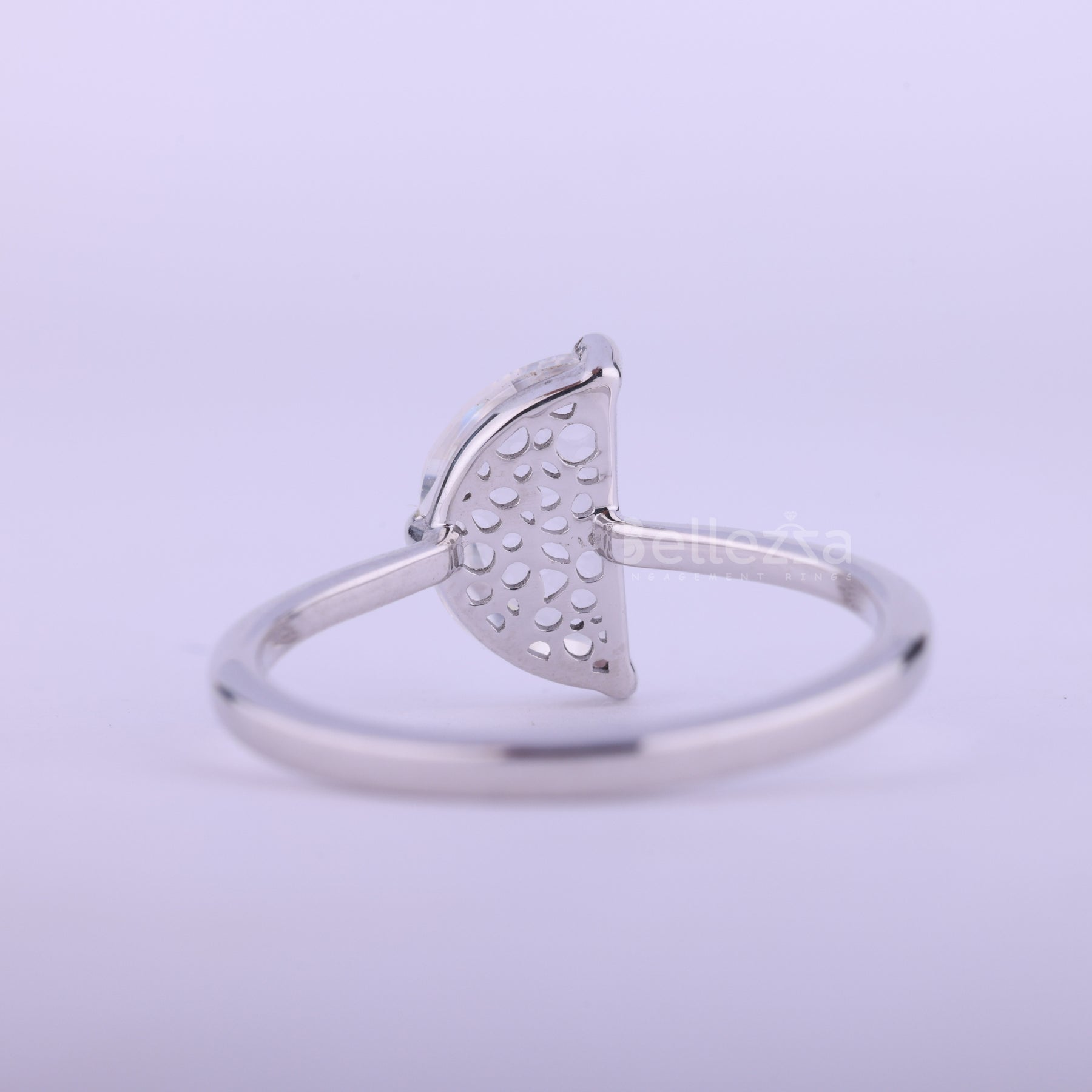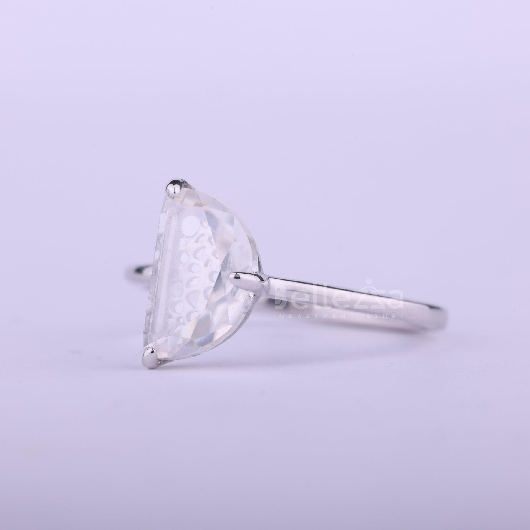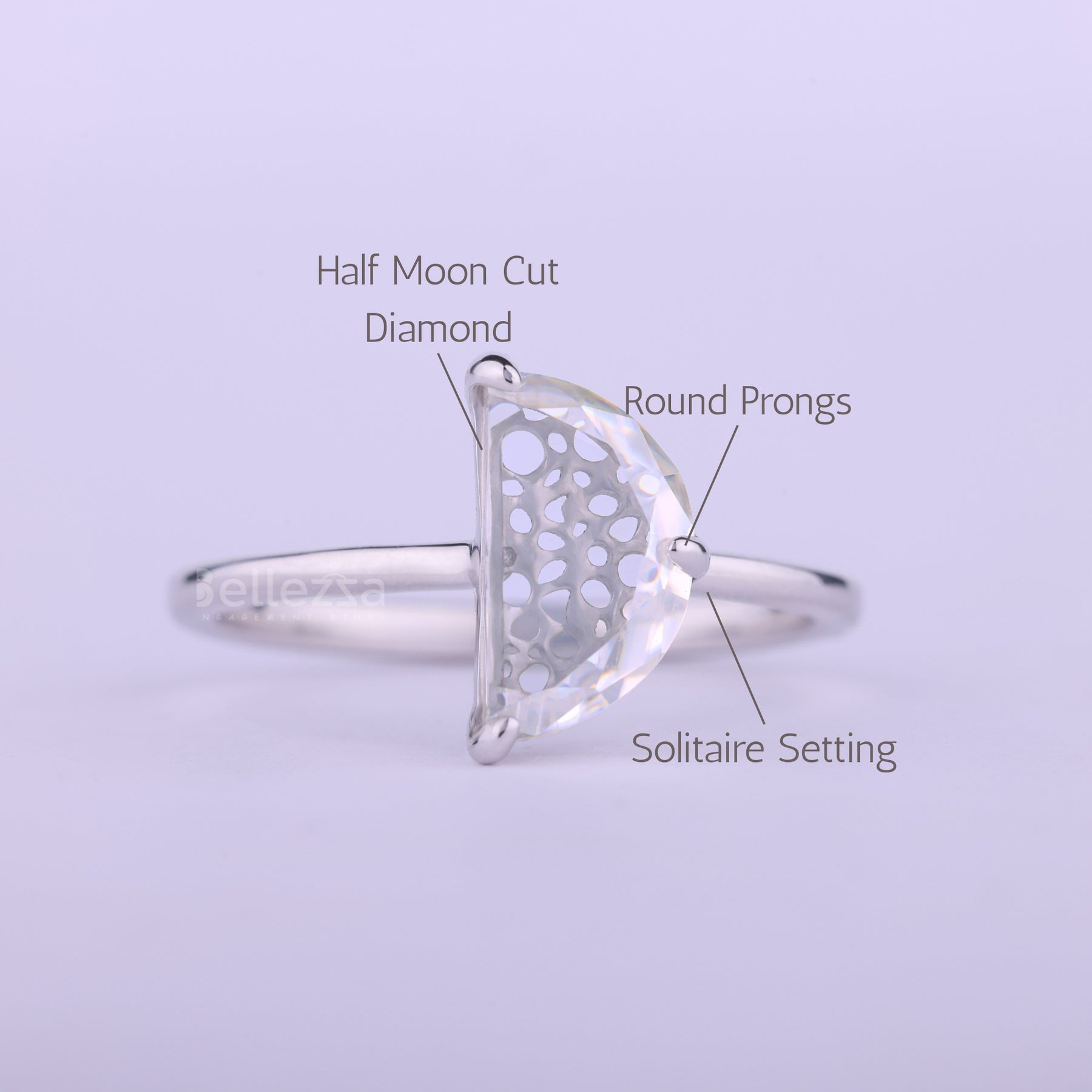 Half Moon Cut Diamond Solitaire Moissanite Engagement Ring