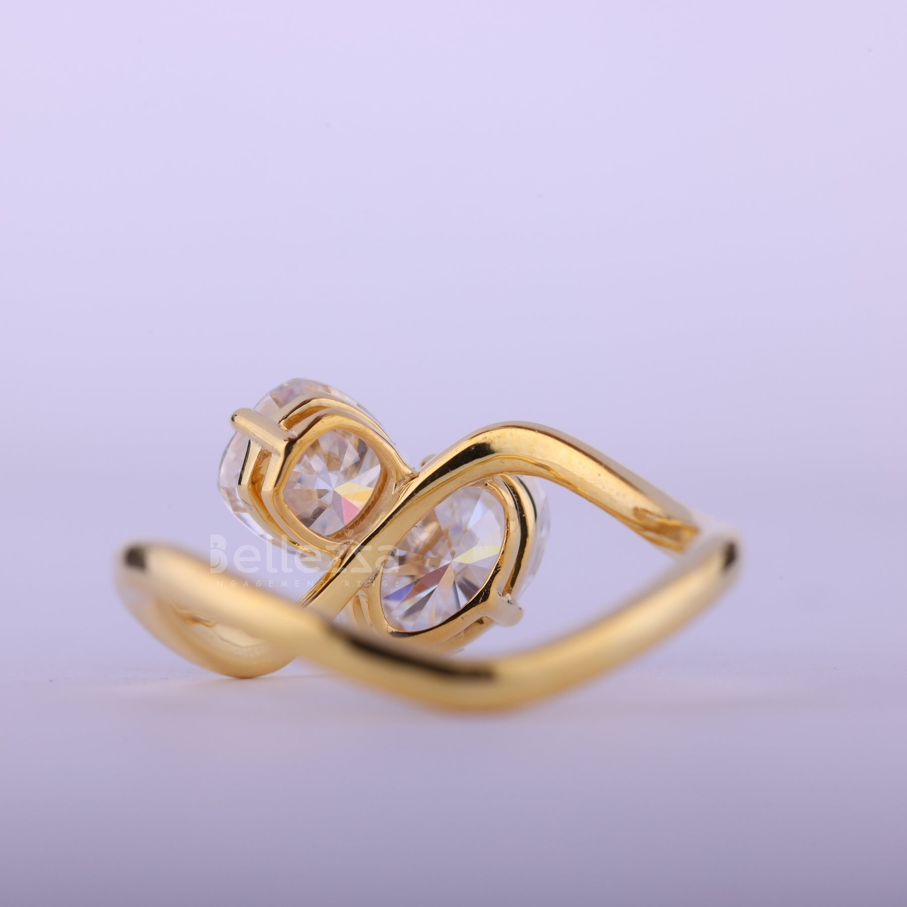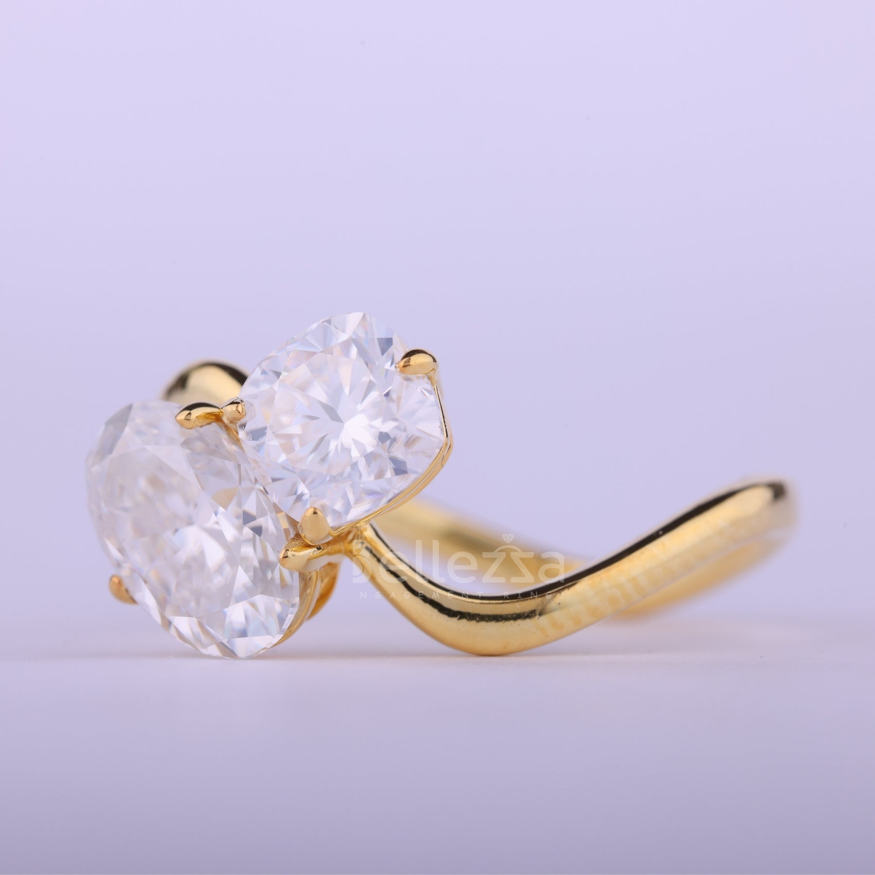 Oval & Cushion Cut Curved Moissanite Toi Et Moi Engagement Ring