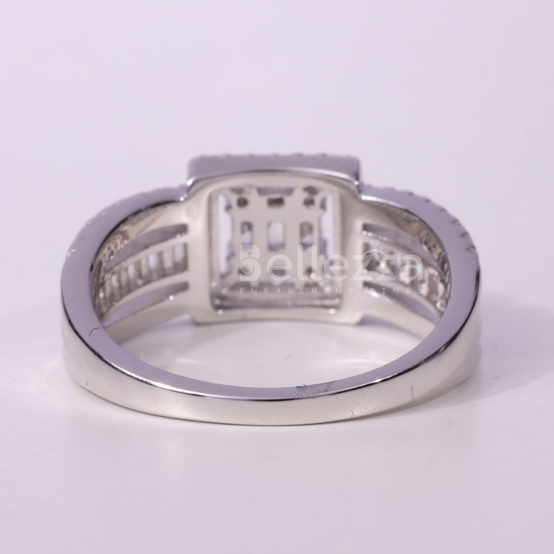 Round & Baguette cut Cluster Diamond Moisssanite Engagement Ring