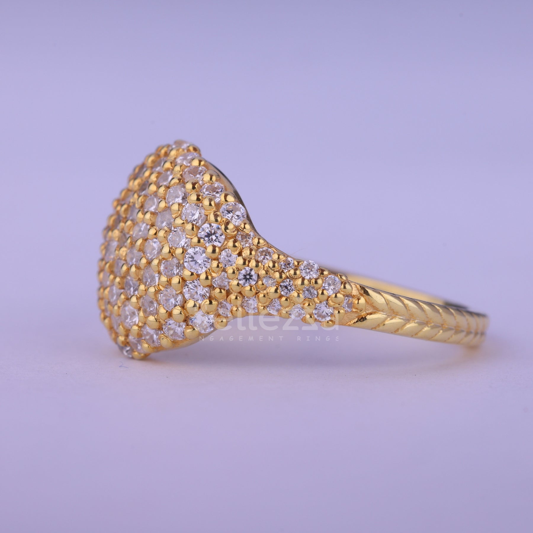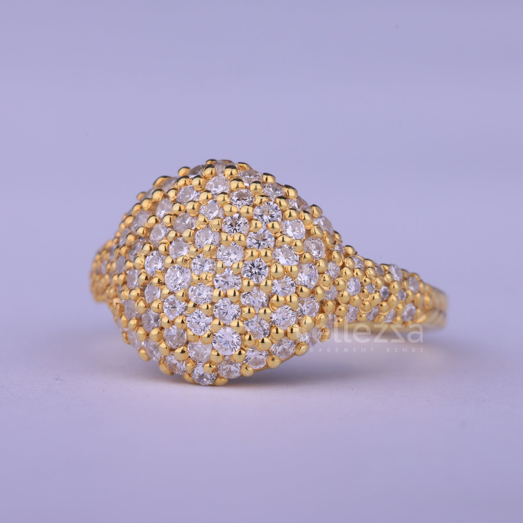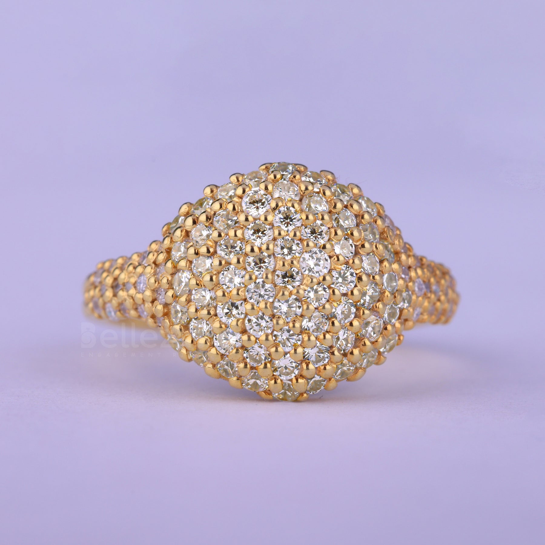 Round Cut Cluster Diamond Dome Style Moissanite Ring