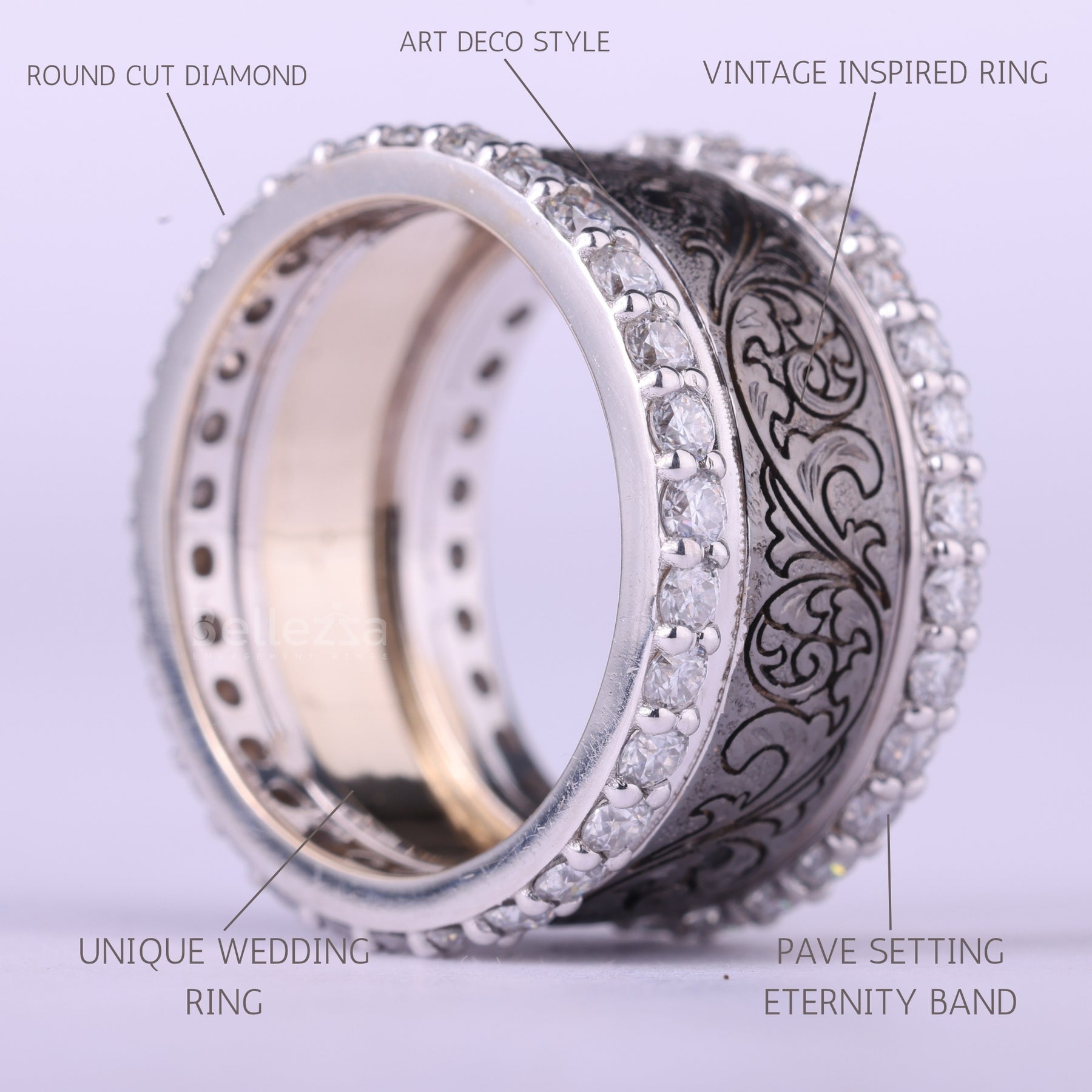 ✥The image presents a timeless Round Cut Diamond Vintage Inspired Art Deco wedding ring, designed with intricate detail and bold elegance. The brilliant Round Cut center stone is framed by symmetrical lines, filigree, and milgrain accents that reflect true Art Deco craftsmanship. This Vintage-Inspired Wedding Ring brings the glamour of the 1920s into modern love stories with its geometric beauty and antique charm. Crafted for brides who adore history and uniqueness, it’s both romantic and stylish. Rising in popularity, this Unique Diamond Ring is a perfect blend of vintage sophistication and enduring sparkle.