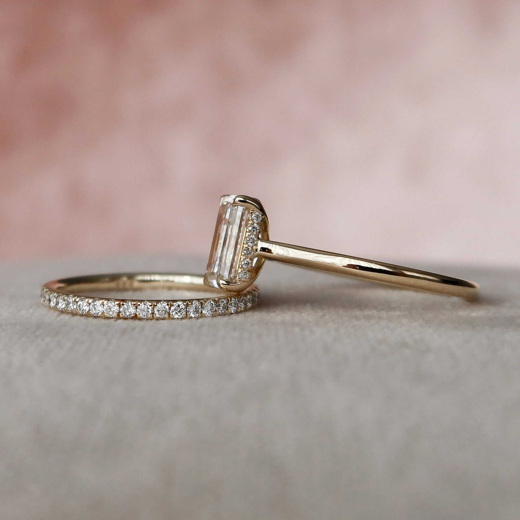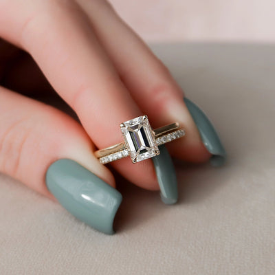 2.0CT Emerald Cut Moissanite Diamond Halo Bridal Engagement Ring Set