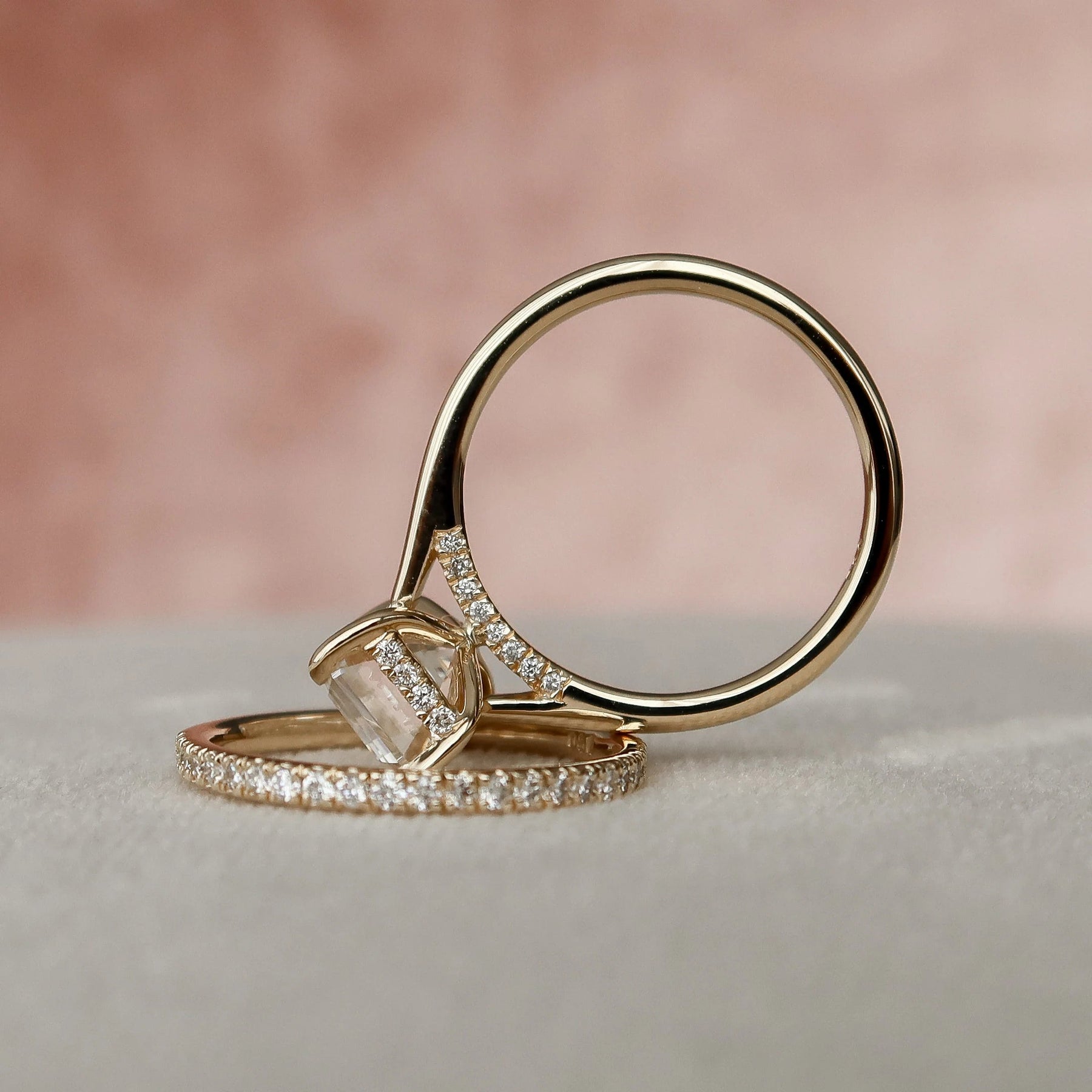 3.0CT Emerald Cut Moissanite  Halo Bridal Engagement Ring Set
