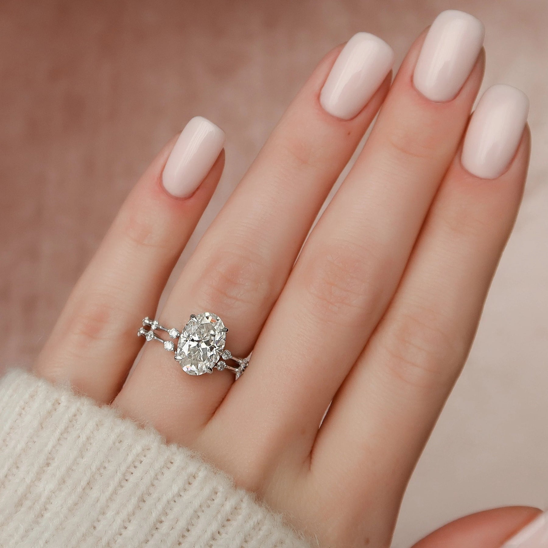 3.0CT Oval Cut Moissanite Eternity Bridal Engagement Ring Set