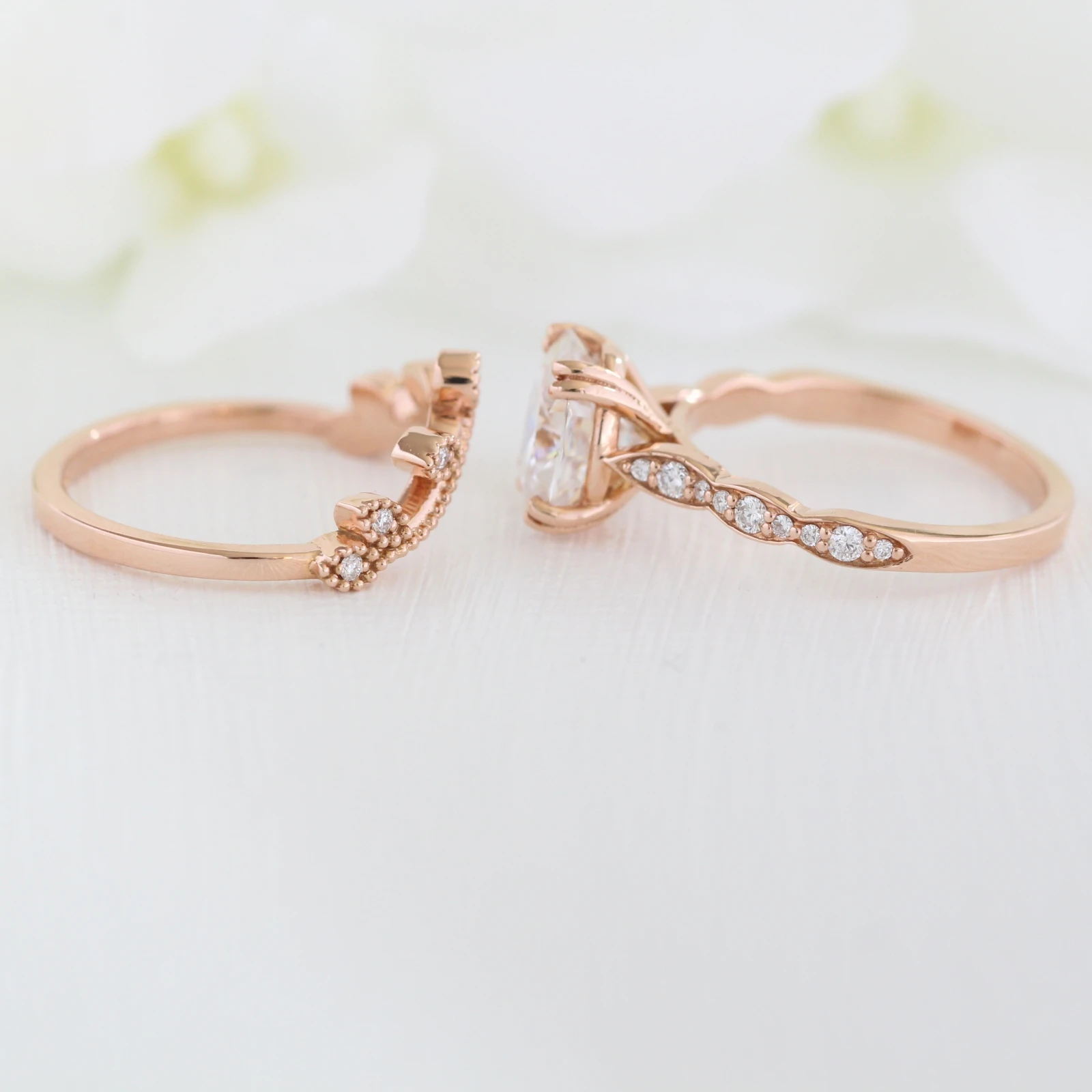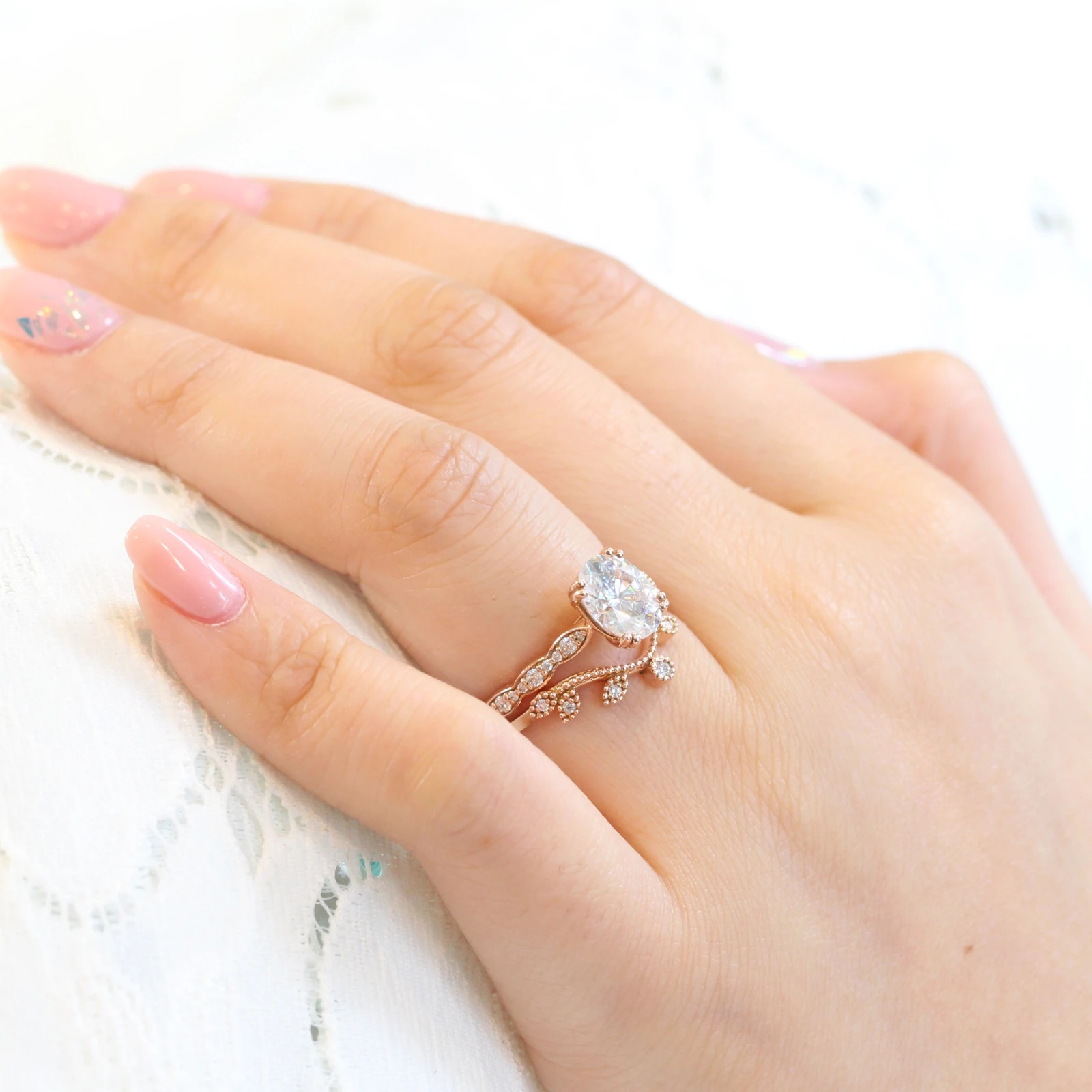 Oval Cut Moissanite Ring With Leaf Diamond Band