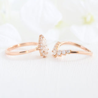 Pear cut moissanite with halo bridal band set 14k in rose gold