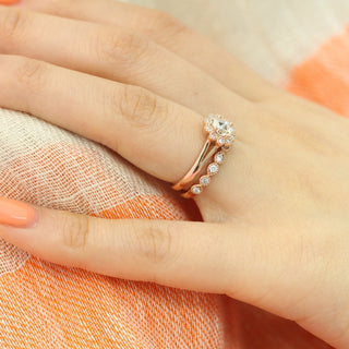 Experience the epitome of elegance with our Round Cut Moissanite Ring With Diamond Band, a mesmerizing addition to our Bridal Ring Set collection. The round-cut moissanite takes center stage, capturing and reflecting light with exceptional brilliance, offering a luxurious sparkle that rivals traditional diamonds. The diamond-studded band enhances the ring's allure, providing a perfect balance between classic sophistication and contemporary style. Meticulously crafted in a timeless design, this bridal set symbolizes the eternal commitment and love shared between two souls. The unique combination of moissanite and diamonds ensures a captivating and ethically responsible choice that will stand the test of time. Celebrate your love story with this exquisite ring set, where each element is thoughtfully designed to create a harmonious blend of glamour and sentiment, making it the perfect embodiment of your enduring commitment.