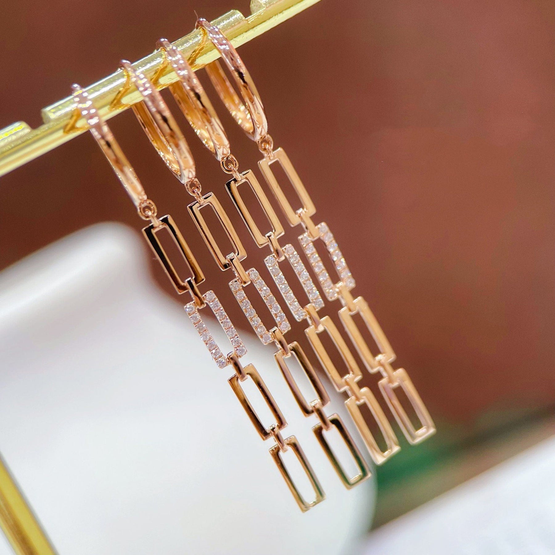 Diamond Rectangle Chain Link Threader Earrings for Her