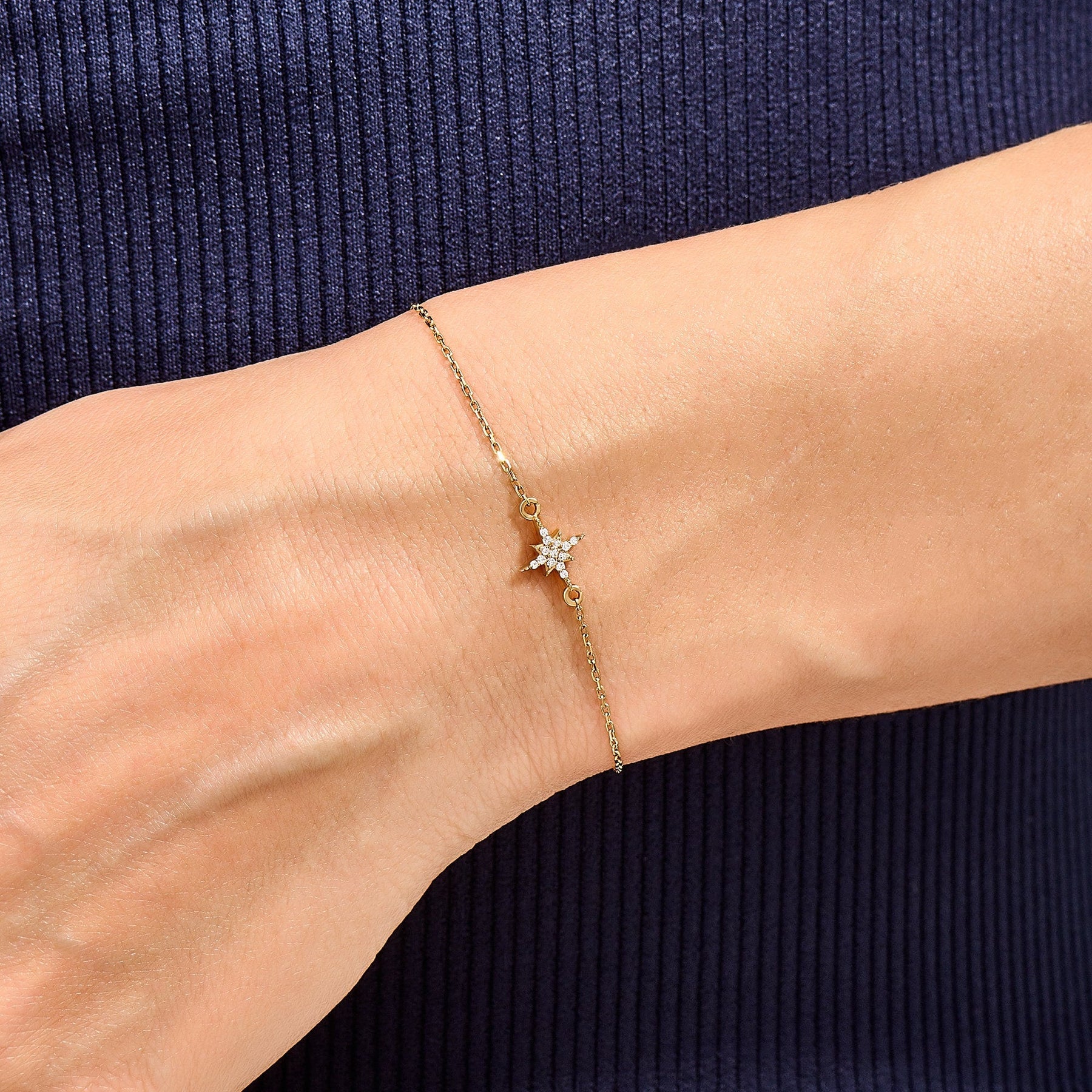 Round Cut Diamond Tiny Star Bracelet For Gift