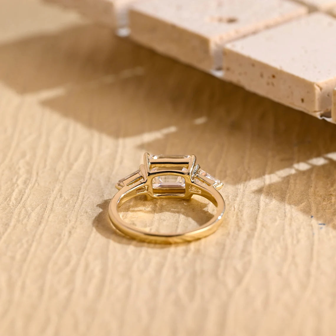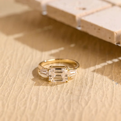 1.50 CT East West Emerald Cut Three Stone Moissanite Engagement Ring