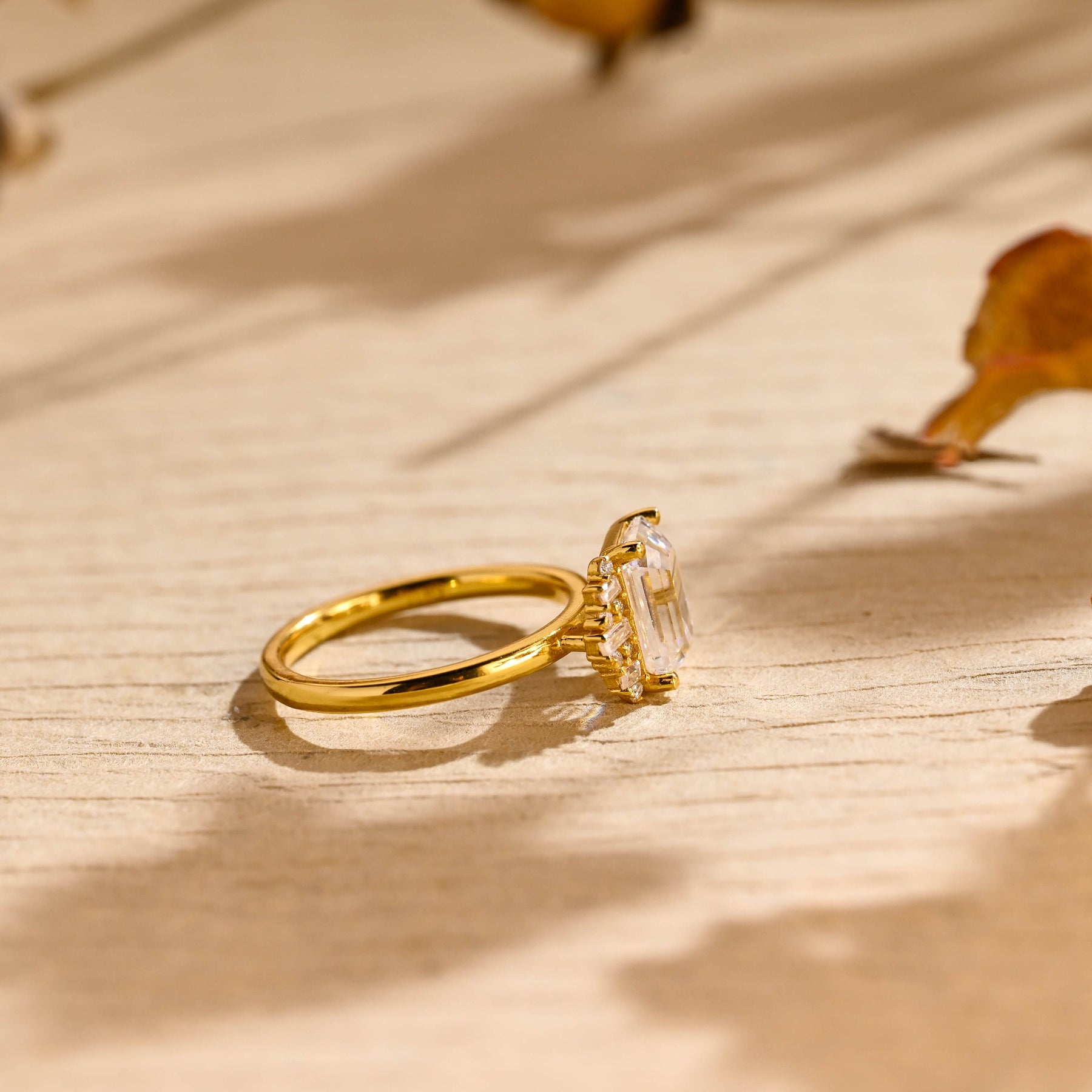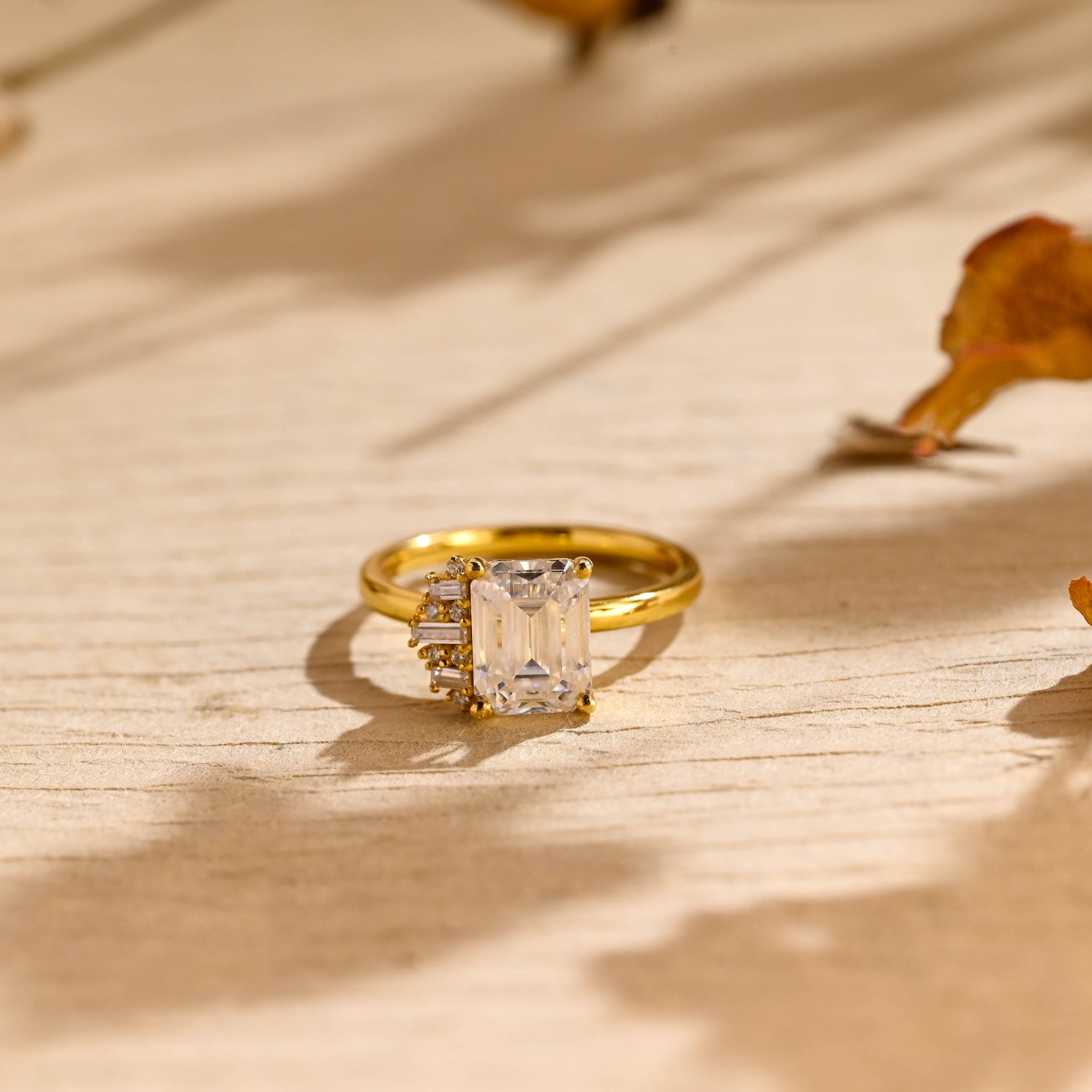 1.0 CT Emerald Cut Cluster Diamond Moissanite Engagement Ring