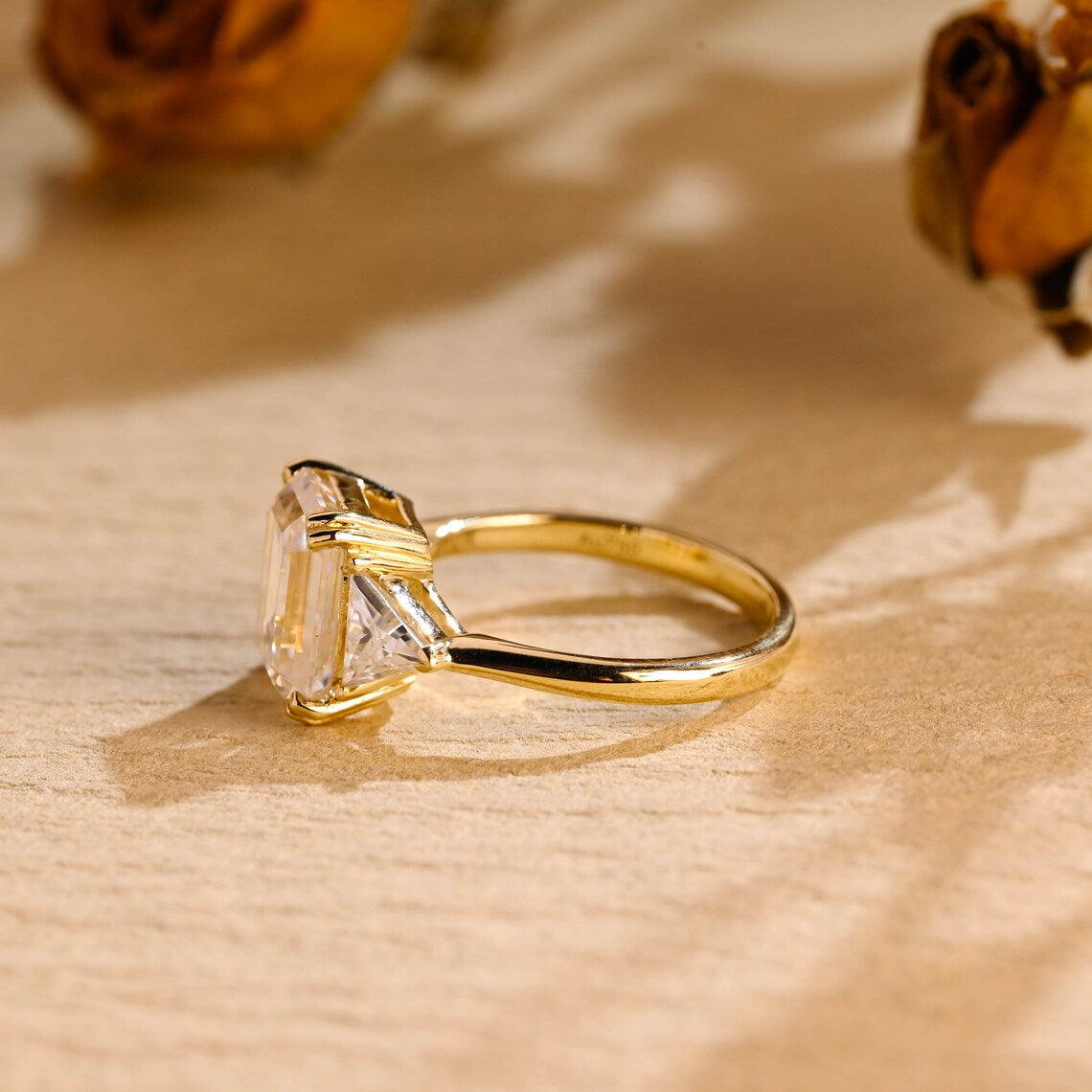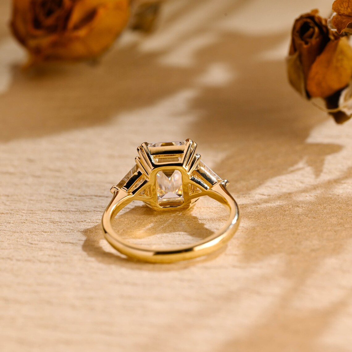 3.50 CT Emerald Cut Three Stone Moissanite Engagement Ring