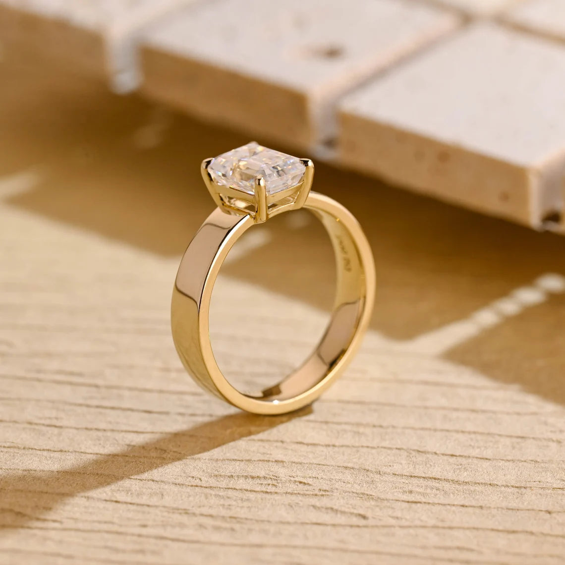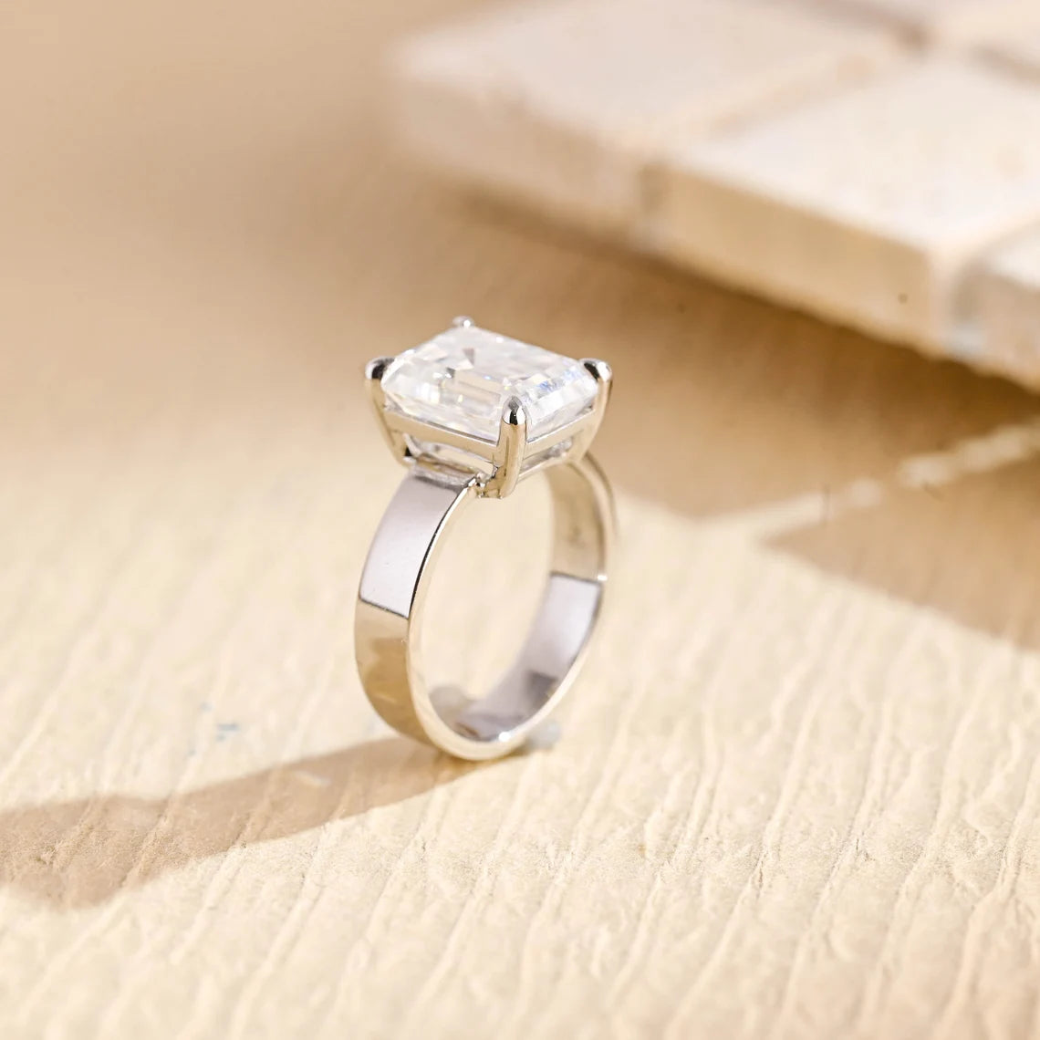 2.0 CT Emerald Cut Wide Solitaire Moissanite Engagement Ring