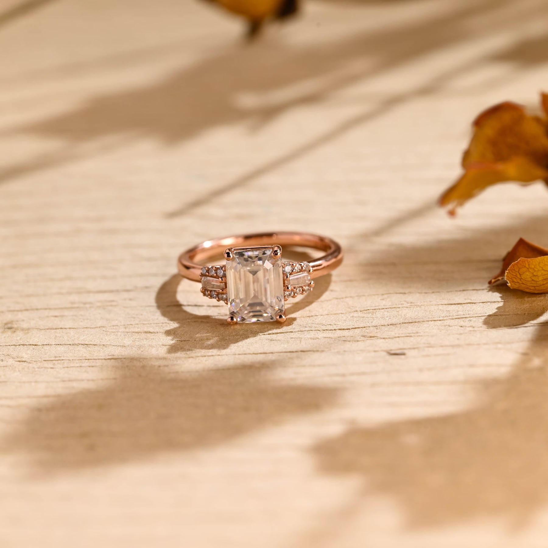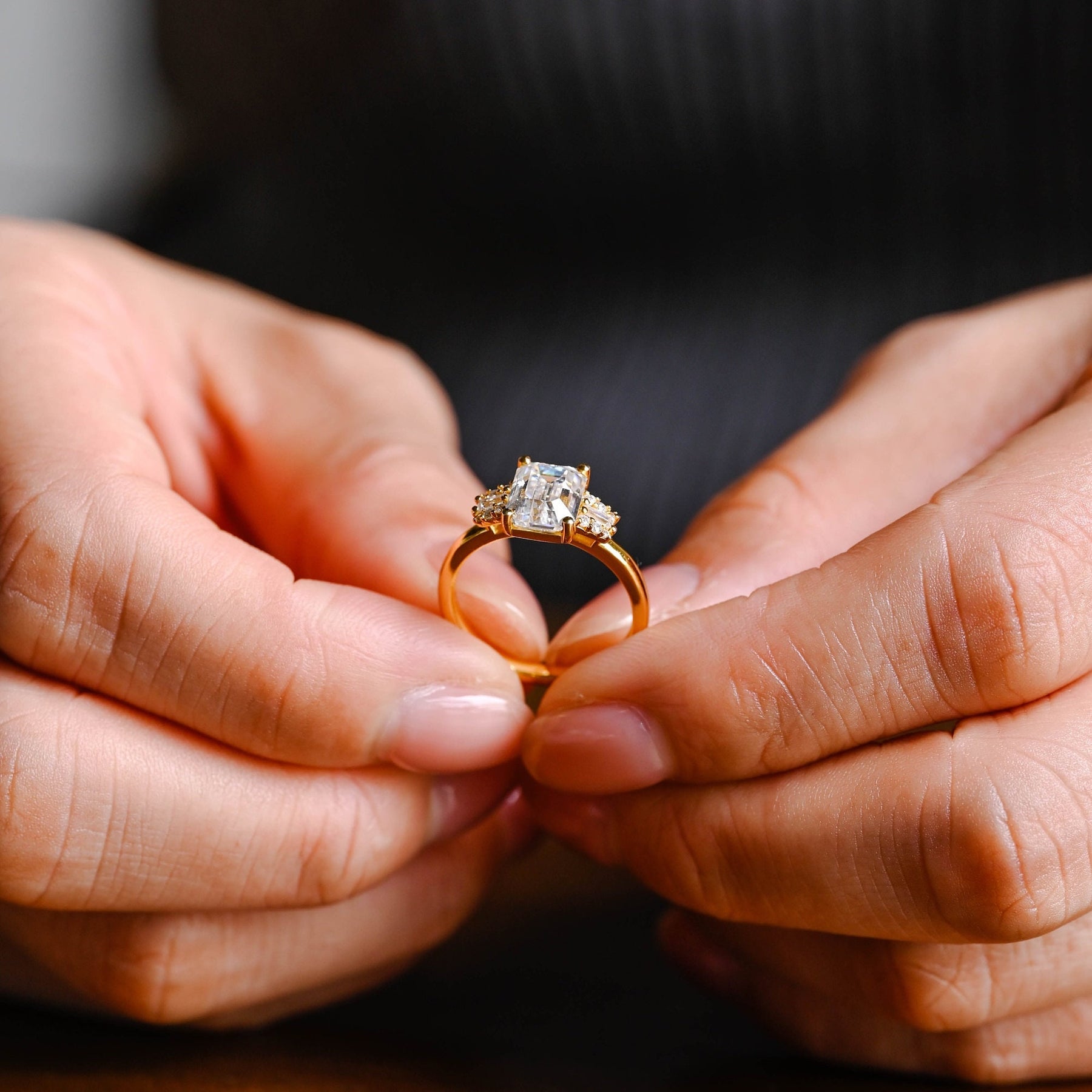 1.50CT Emerald Diamond Cluster Moissanite Engagement RIng