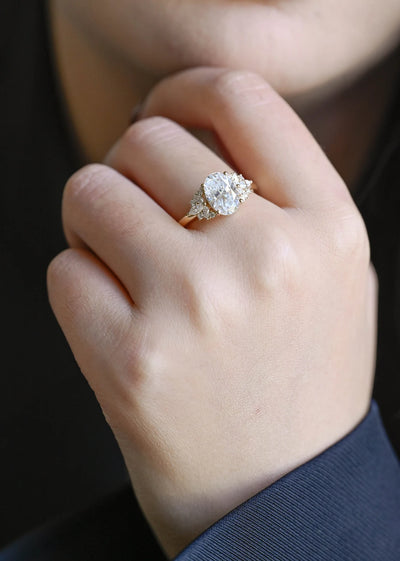 3.0 CT Oval Cut Cluster Diamond Moissanite Engagement Ring