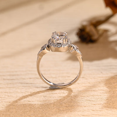 1.50 CT Oval Cut Halo Cluster Moissanite Engagement Ring