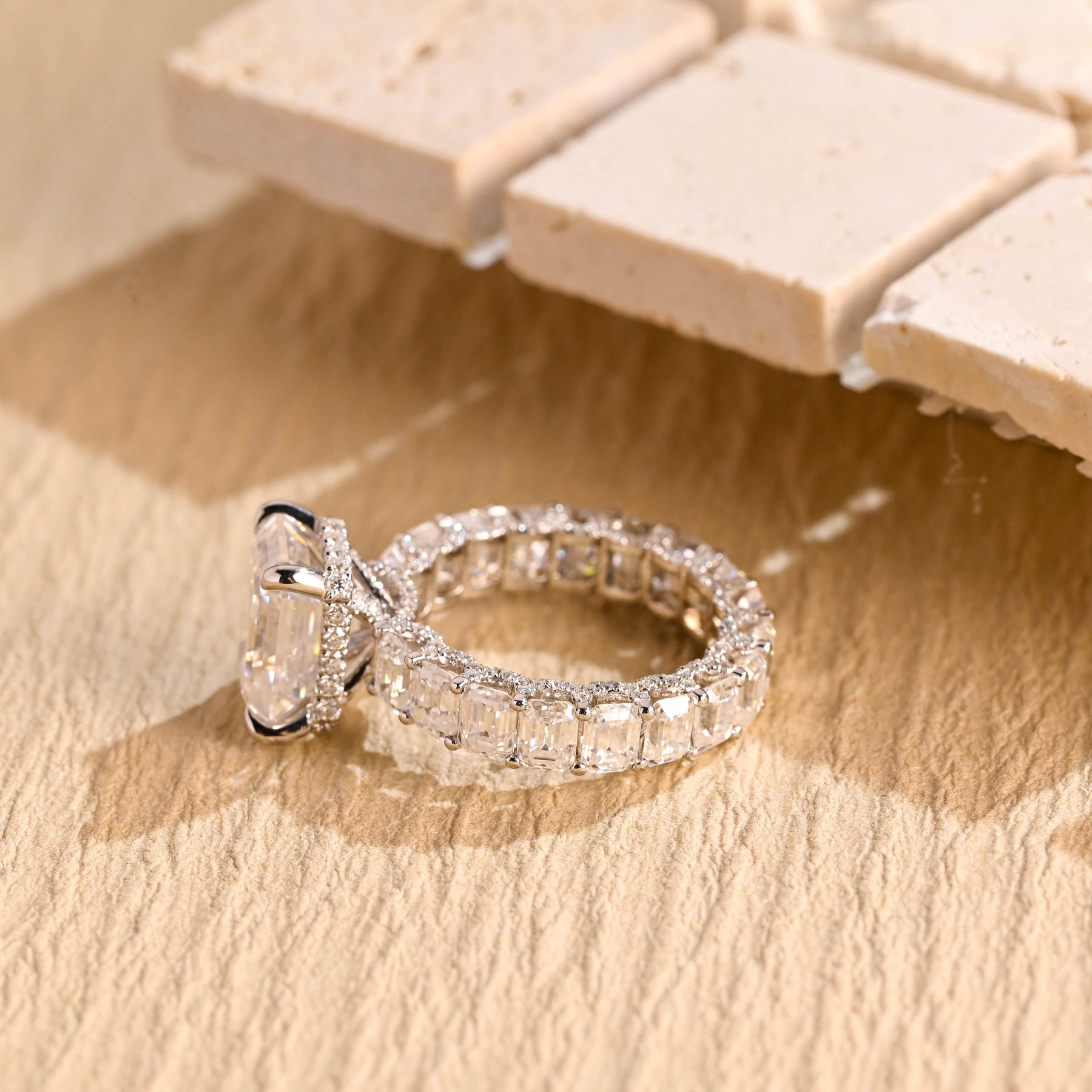 ✥The 1.50CT Emerald Cut Pave Setting Full Eternity Moissanite Engagement Ring is a breathtaking symbol of timeless love. Featuring a 1.50CT emerald-cut moissanite center stone, its brilliance is enhanced by a pave setting that flows seamlessly into a full eternity band. This luxurious design offers a continuous sparkle, embodying infinite elegance and sophistication for a truly memorable statement piece.