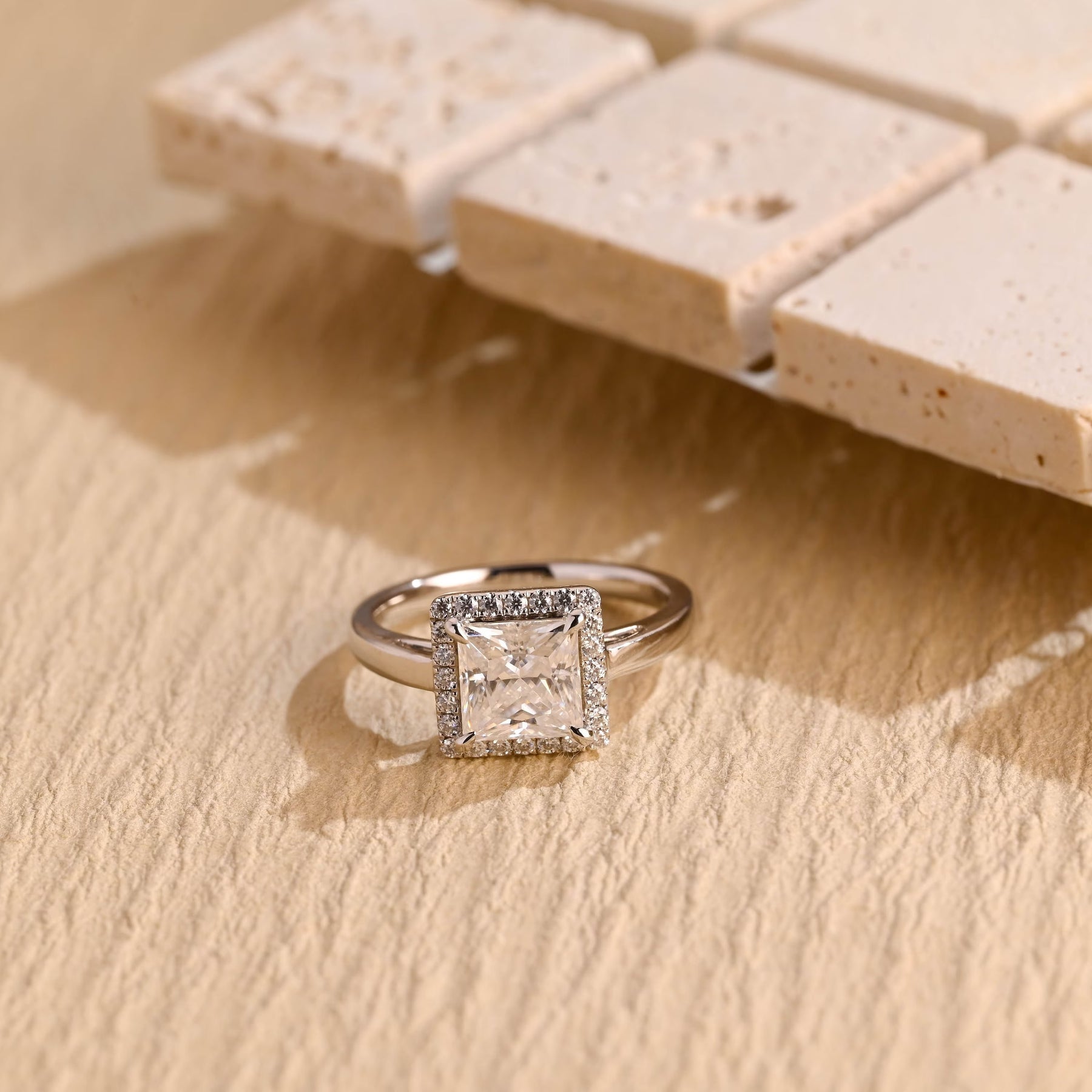 1.0 CT Princess Cut Halo Diamond Moissanite Engagement Ring