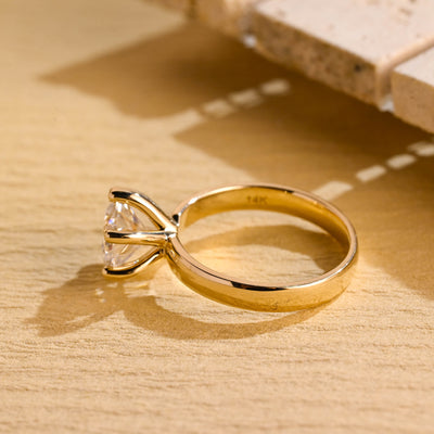 1.0 CT Round Brilliant Diamond Wide Band Moissanite Engagement Ring