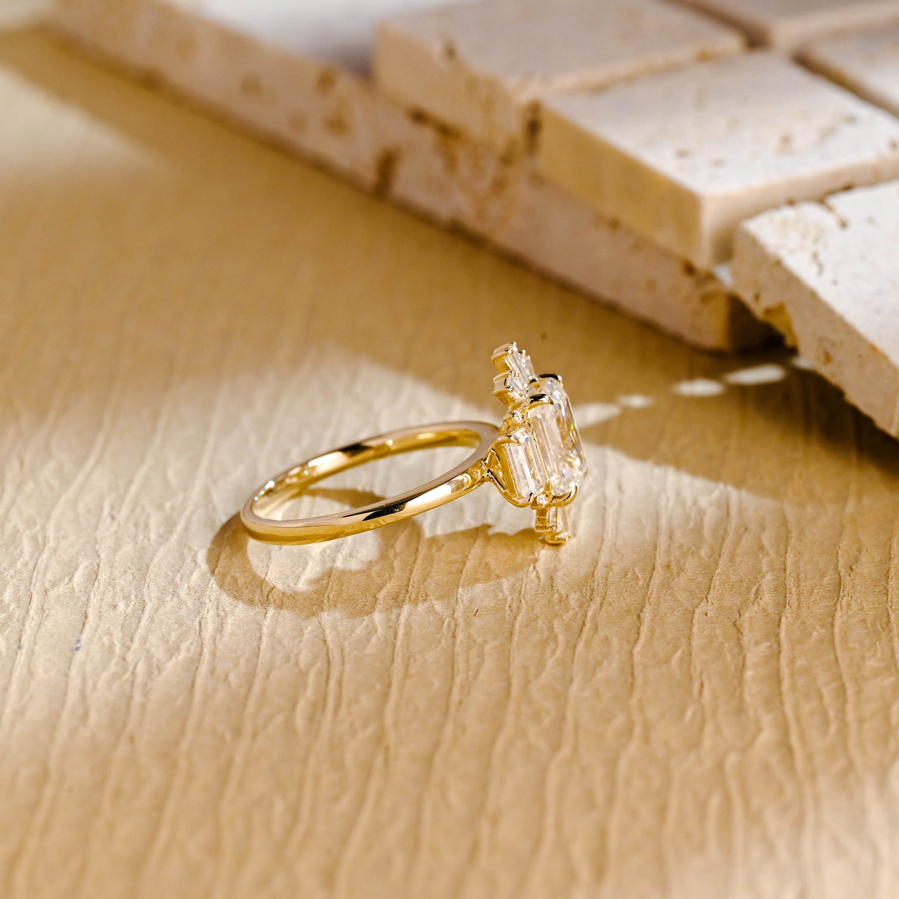 1.50 CT Emerald Cut Cluster Diamond Moissanite Engagement Ring