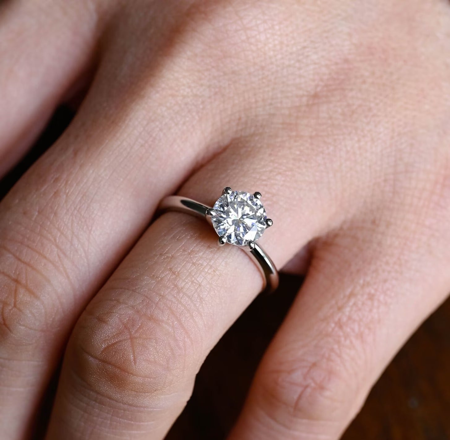 1.0 CT Round Brilliant Solitaire Moissanite Engagement Ring